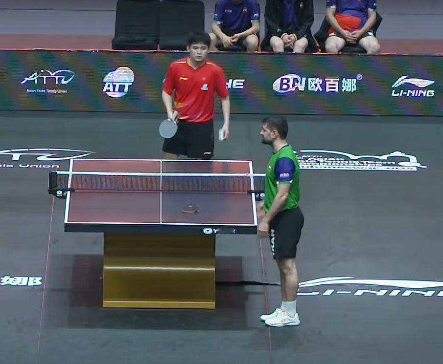 亚锦赛快报:中国队3:1战胜伊朗队 王楚钦将和张本智和对决。 第一场 林诗栋对战本雅明, 小石头苦战五局, 2:3输了 第二场 梁靖崑先失一局, 3:1逆转阿拉米扬 第三场 王楚钦3:0轻松拿下侯赛因。 第四场 阿拉米扬遮挡被警告, 把拍球扔了, 林诗栋3:0赢了