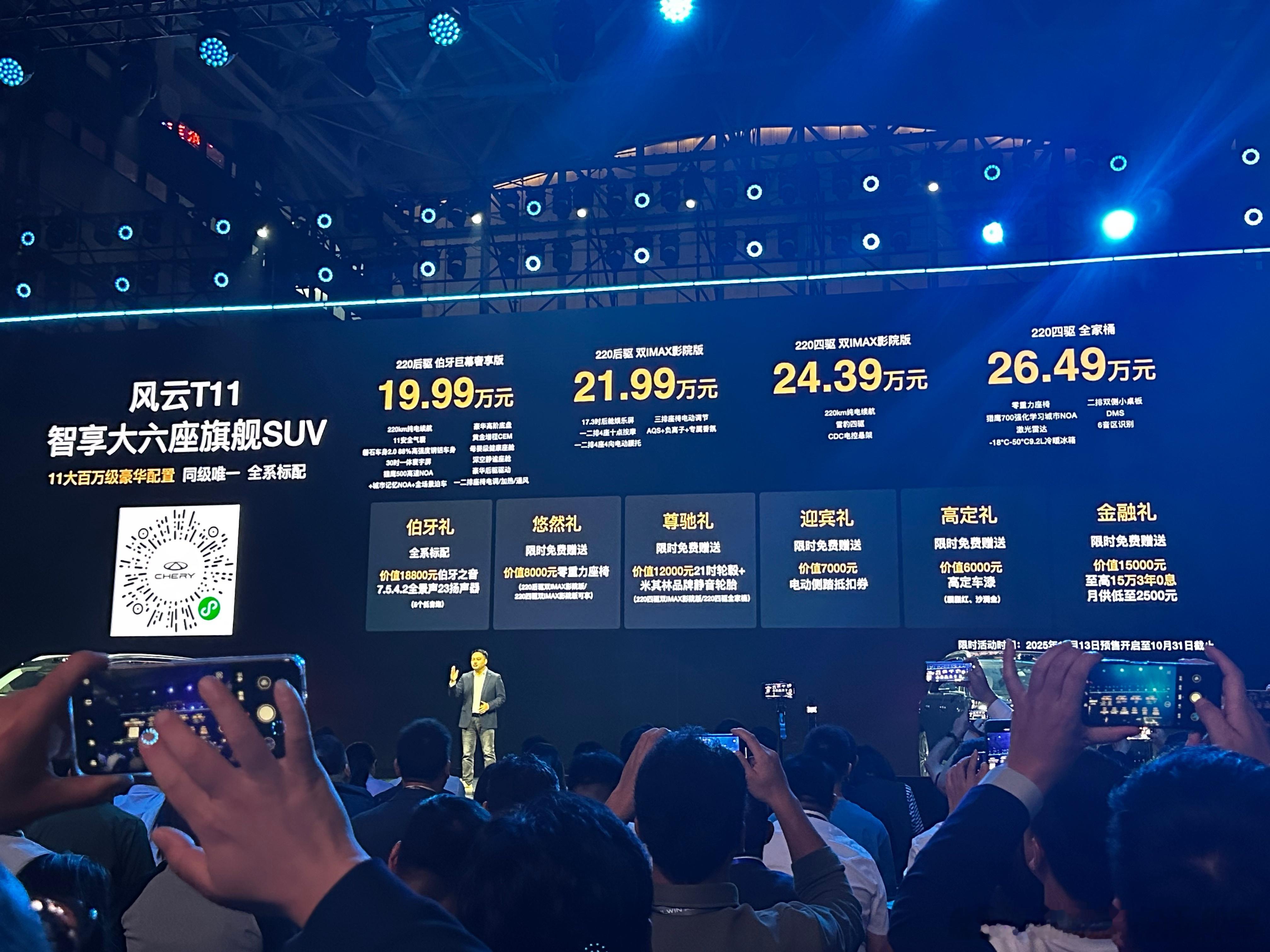 今晚奇瑞风云T11正式发布了,给大家来个省流总结: