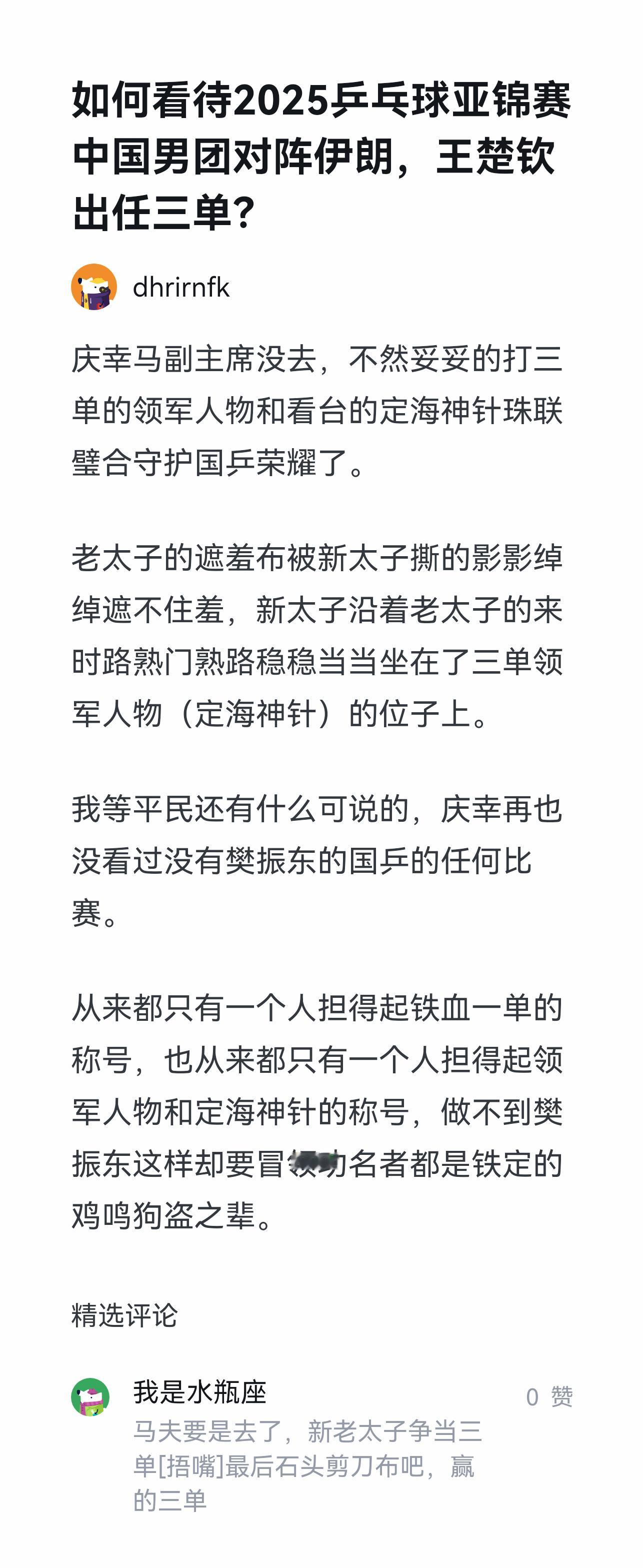 如何看待2025乒乓球亚锦赛中国男团对阵伊朗排兵布阵?