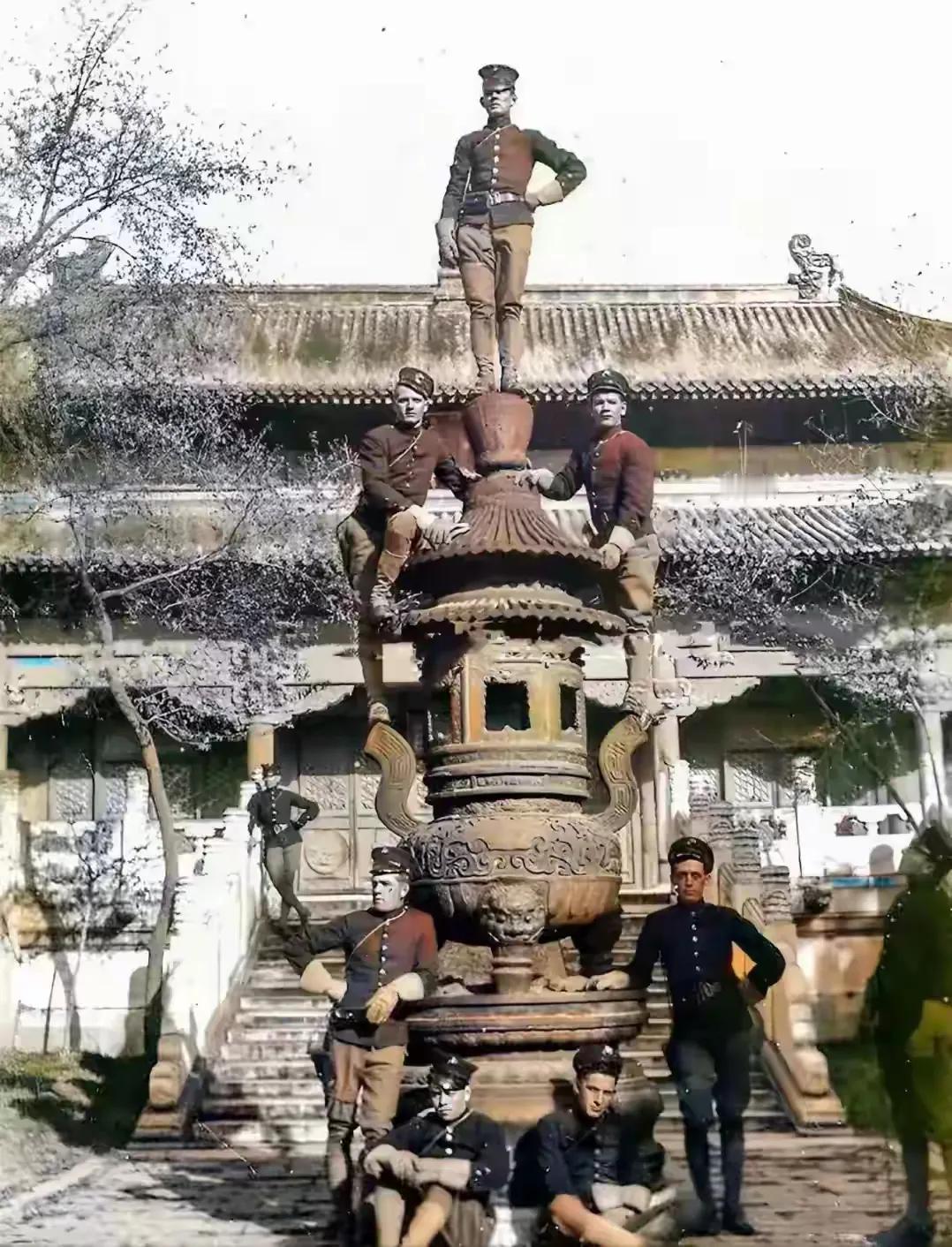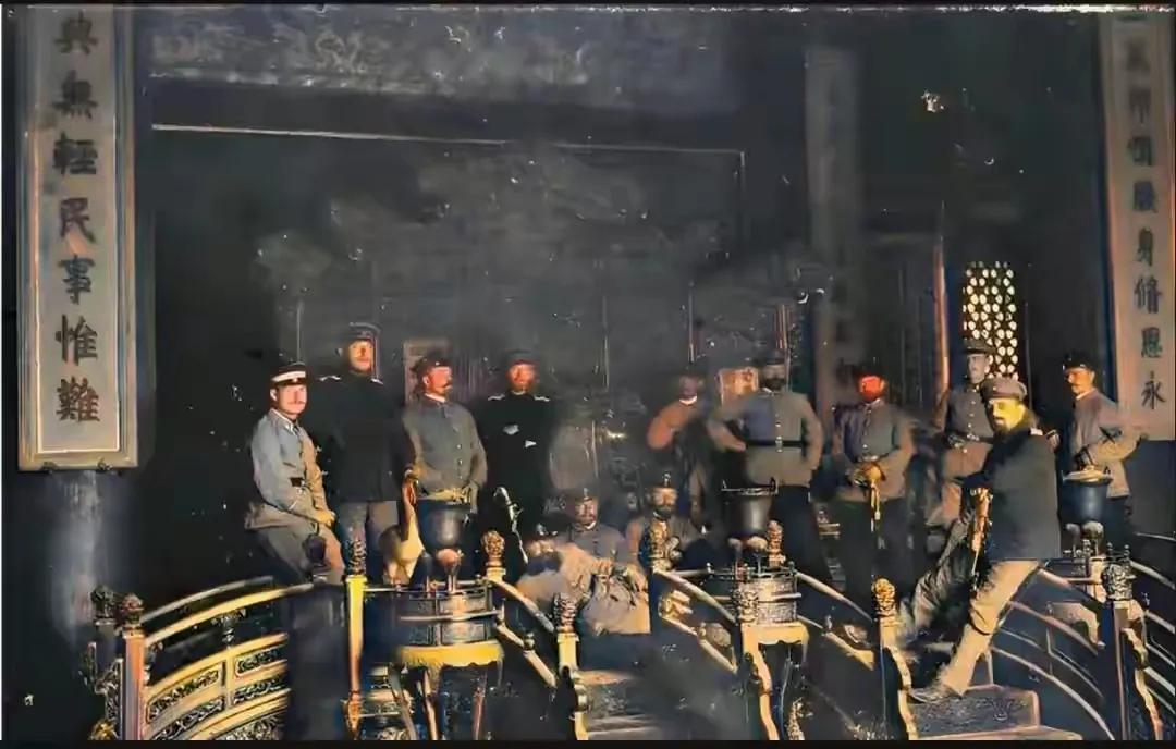 1900年8月14日,八国联军2万余人闯入紫禁城。当列强士兵在太和殿前合影时,清