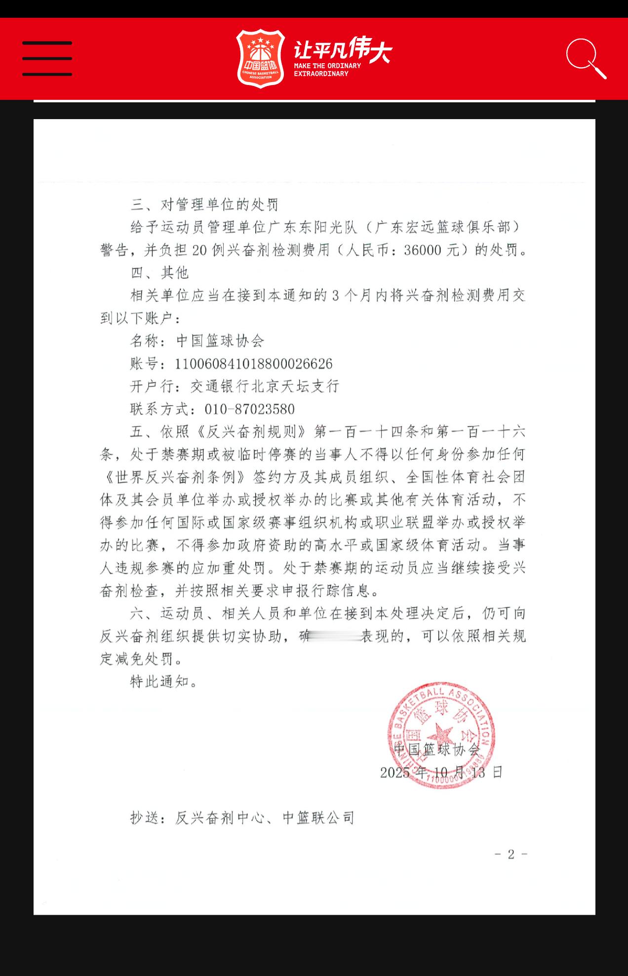 中国篮协对吉伦沃特和广东队的处罚出来了,吉伦沃特禁赛三个月,对广东宏远反兴奋剂负