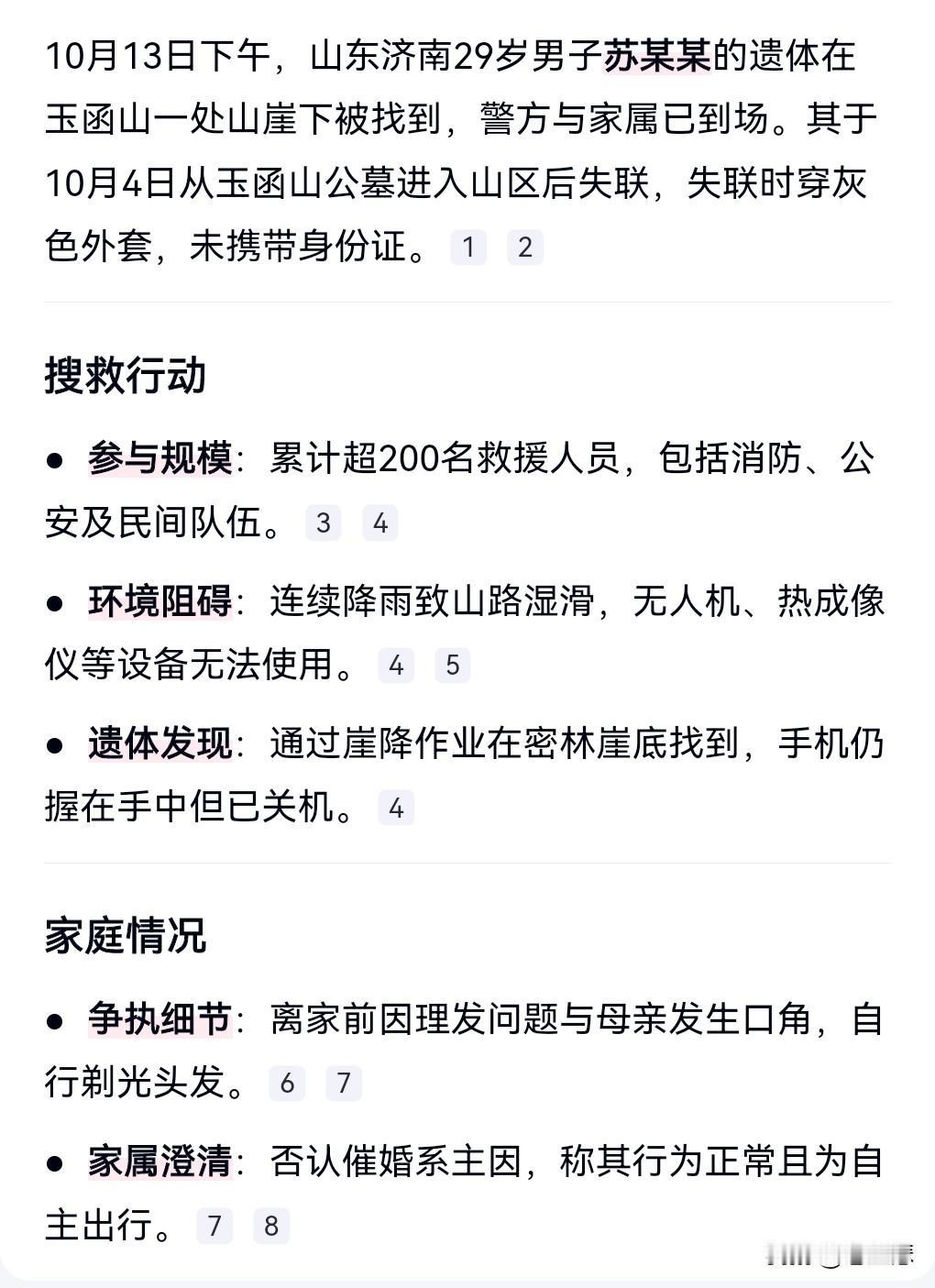有消息传来,不过是坏消息。 此前山东济南29岁男子失联。 10月13日传来不好的消息,男子的遗体已经被找到了。 这真的是挺可惜的,这么年轻。 这得给父母带来多大的痛苦啊。 现在的人内心也是非常的脆弱,情绪问题值得关注。