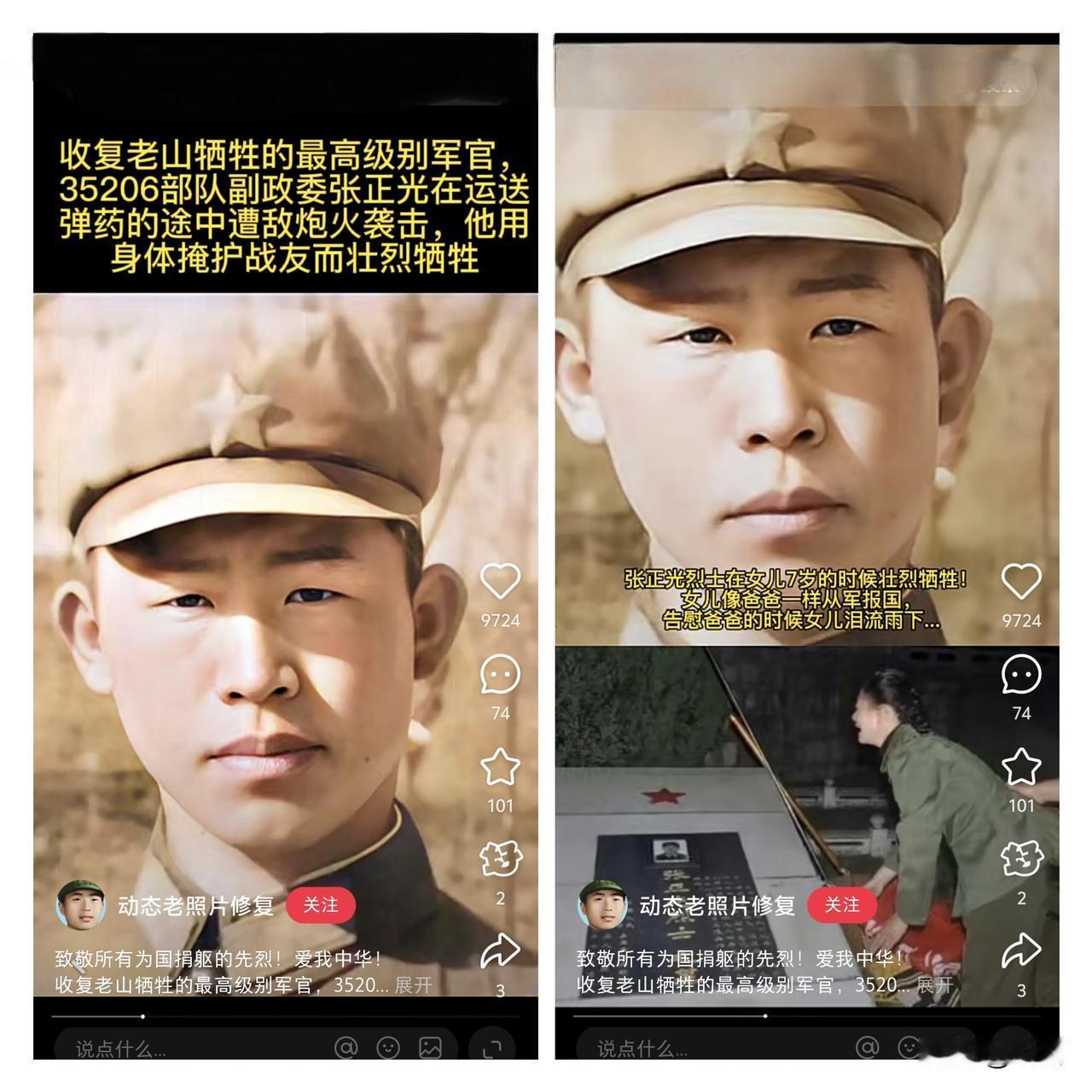 35岁副政委用身体挡弹片!老山战场上这一幕,现在看依然让人泪目! 你知道吗?麻栗坡烈士陵园里,有位烈士的墓碑前总摆着最多的鲜花,他就是张正光——老山十年轮战中牺牲的最高级别军官,牺牲时才35岁。 这位云南武定汉子,当时是14军40师119团副政委,本不用冲在最前线。可1984年5月2日那天,他非要跟着后勤分队送弹药,说“多个人手,战士们就能少点危险”。 越军的炮火突然砸下来时,他第一反应不是躲,而是把身边的小战士往怀里拉。弹片穿透他身体的瞬间,他还攥着小战士的胳膊喊“快隐蔽”。 现在总有人说“英雄离我们很远”,可张正光用生命告诉我们:英雄从不是高高在上的符号,是危难时会把生的机会让给别人的普通人。 你身边有没有听过老一辈讲老山战役的故事?或者你去过麻栗坡烈士陵园吗?评论区聊聊那些让你难忘的英雄瞬间吧!