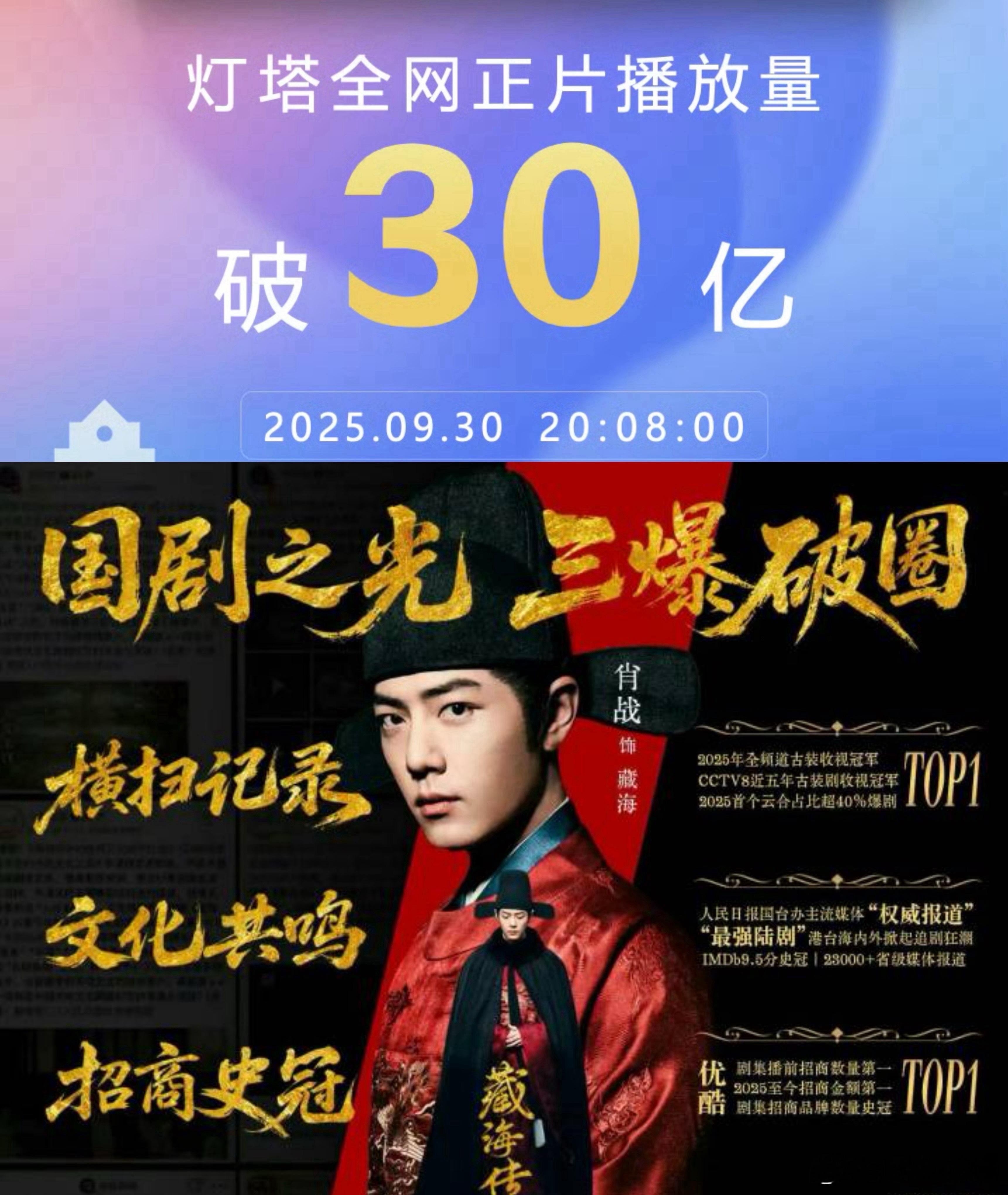 •凭该剧再次大破圈,肖战国民度与海外影响力双升。