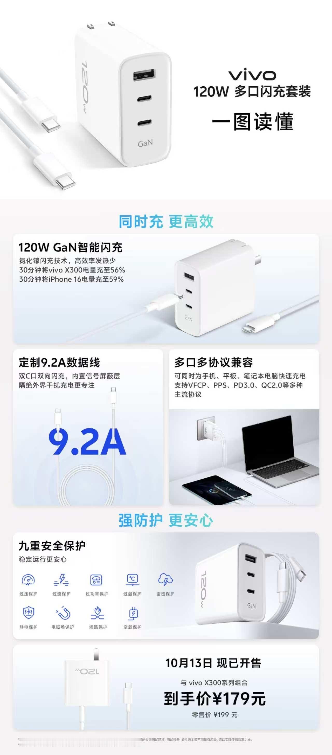最后,120W多口闪充套装也上了发布会,一个插头解决以上全部设备的充电,仅售199元,完美!