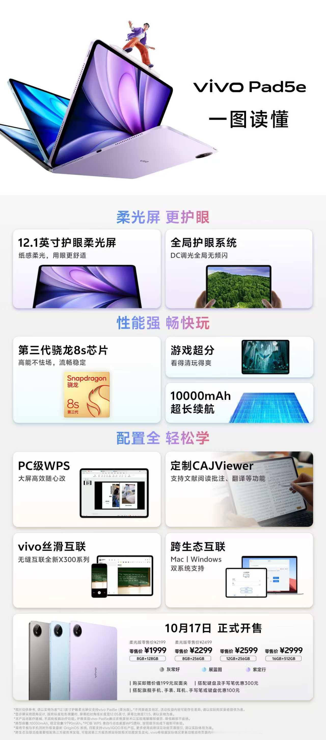 vivo Pad5e 可以说是学生党绝佳学习伴侣了,12.1英寸护眼柔光屏看网课不累,10000mAh电池能扛一整天,第三代骁龙8s跑APP很流畅,PC级WPS等办公软件甚至也很适合上班族!售价1999元起!