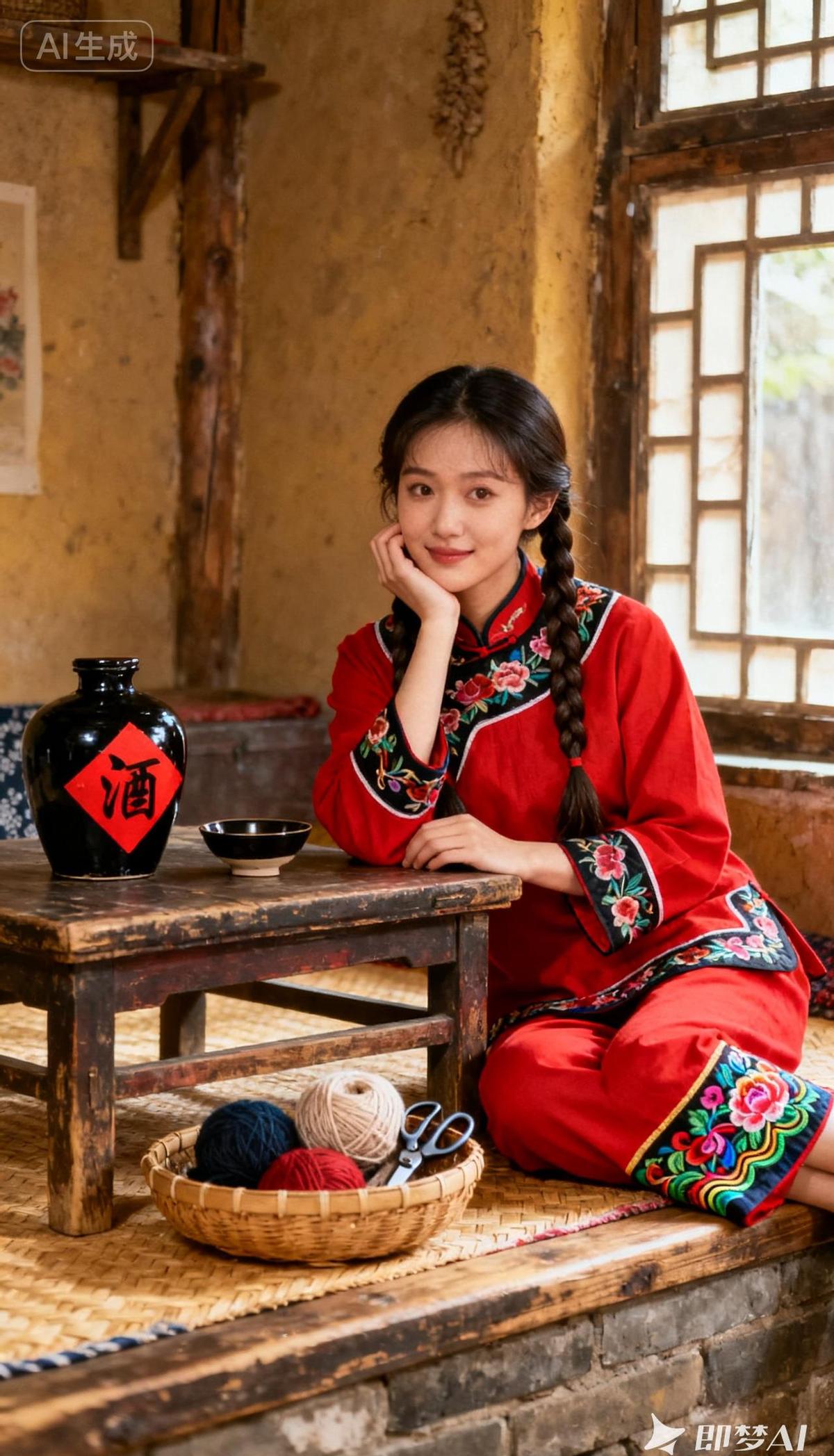 她坐在土炕上,红底绣花的衣裤在斜阳里泛着光,袖口和裤脚的纹样,像极了小时候外婆家墙头的图案。 面前的小木桌上,黑陶酒坛贴着一个手写的“酒”字,旁边是只素白小碗,毛线球滚在脚边,银剪轻轻搁在织了一半的布上。 没人知道她是谁,但全网都在认出她。 今年秋天,时装周的T台上,设计师把这种红底彩绣搬上了外套,三天卖了两万多件。 评论区刷得最多的是:“这不就是我奶奶炕头那件袄吗? ” 山西的酒坊也悄悄变了。 游客穿上同样的衣裳,坐在同样的炕上,亲手给酒坛贴红字,用竹篮装毛线,剪花样子。 预约排到了十一月,小红书上叫它“最像外婆家的地方”。 没人再把它当老物件了。 银剪,这个过去被叫作“剪纸工具”的小东西,今年被写进了《中国女红年鉴》,成了“织女”的新标志——因为它不挂线,剪得准,是真手艺。 原来我们怀念的,不是旧东西本身。 是那种慢下来的温度,是有人愿意花一整天,只为剪出一朵花,封一坛酒,守一炕暖。 它没消失,只是换了个方式,重新回到我们身边。