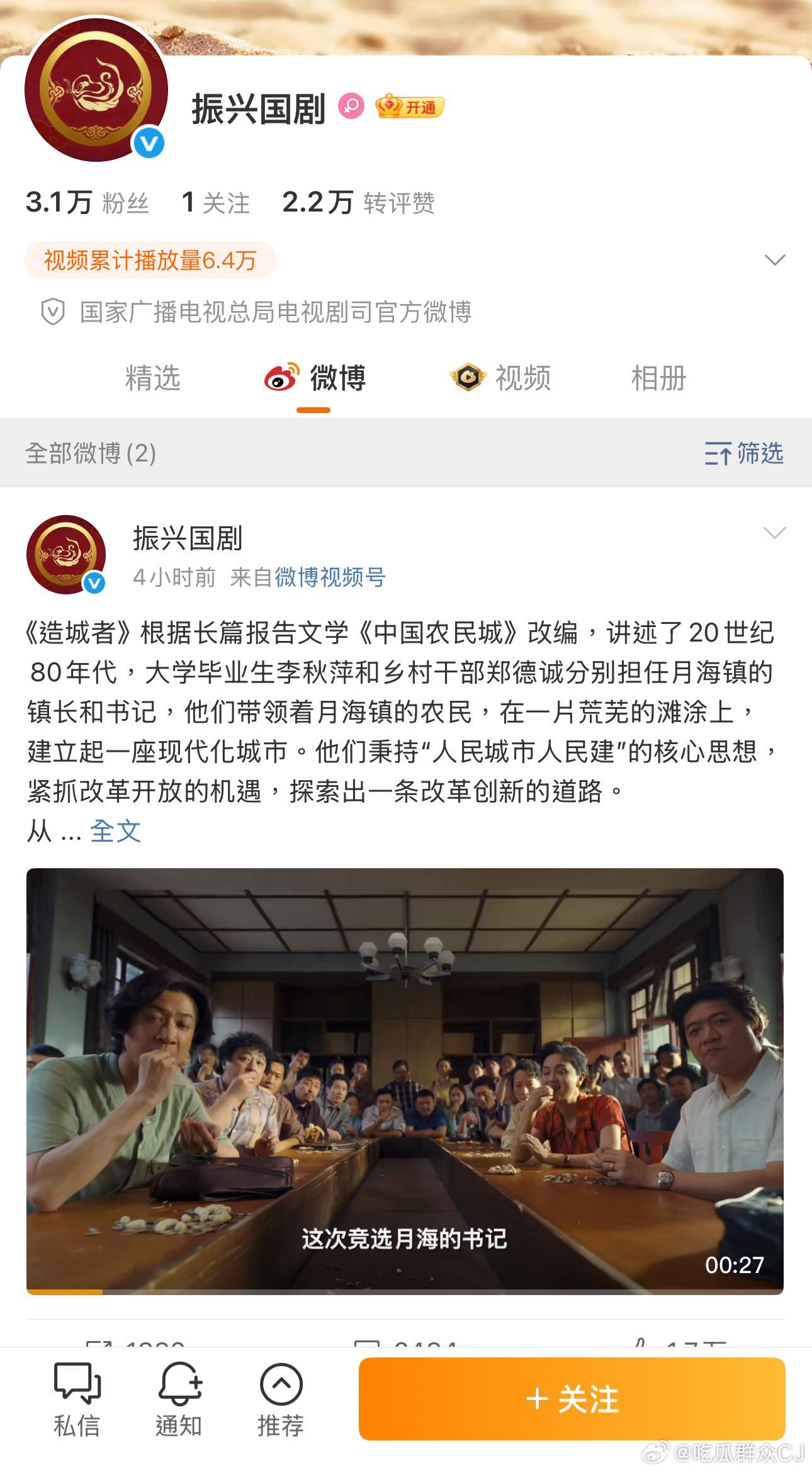 广电总局电视剧司在五大平台(微博/微信公号/红书/抖/B站)都开了官方账号,叫“振兴国剧”。