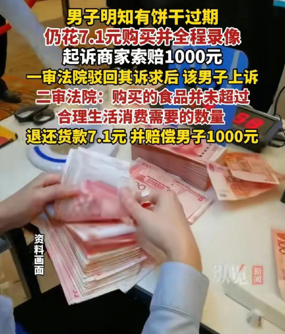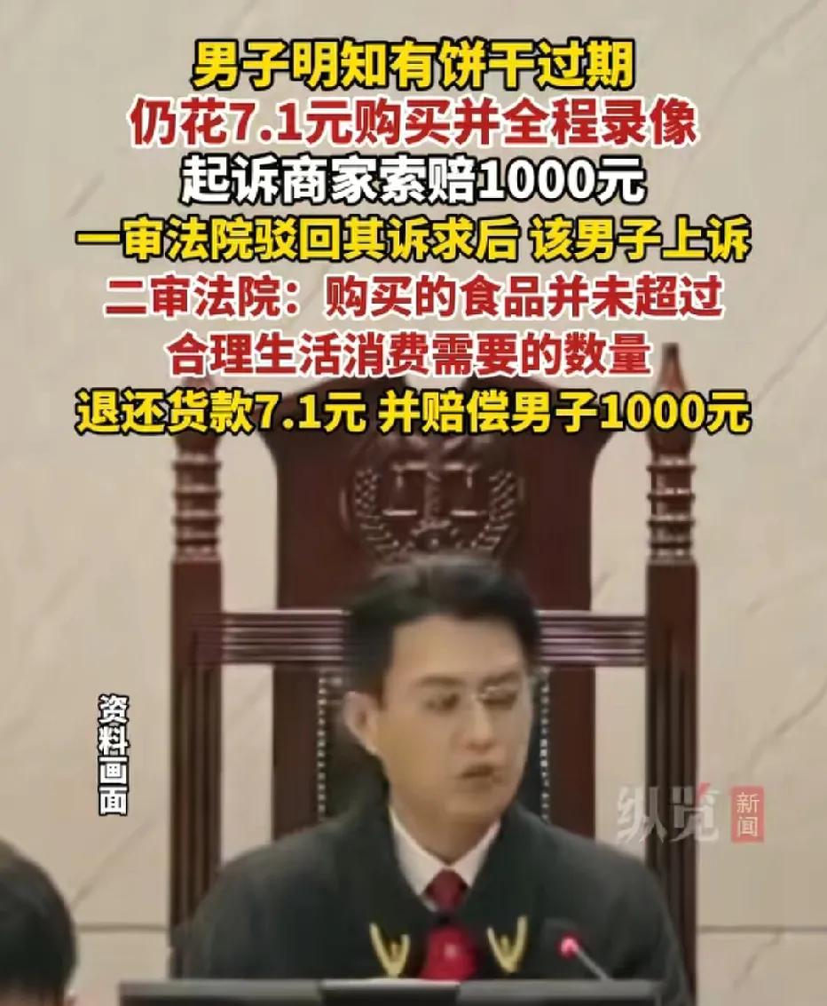重庆,男子去超市买零食,发现饼干过期了,但他却花了7.1元买下,还全程录像,保留证据,起诉商家索赔1000元。一审法院驳回男子诉求,男子不服上诉,二审却支持男子诉求。 黄某日常爱逛超市囤零食,这天他像往常一样在货架间挑选。 他目光突然停留在了一包饼干上,包装上的生产日期和保质期清晰显示,这包饼干已过有效期。 换作旁人,或许会直接告知店员或转身离开。 但黄某却做出了不同的选择。 他先拿出手机,对着饼干的保质期、货架位置等细节全程录像。 随后走到收银台,自掏 7.1 元买下了这包过期饼干,将购物小票和饼干一起妥善收好。 几天后,黄某以商家售卖过期食品、违反食品安全相关法律为由,一纸诉状将超市告上法庭,明确提出 1000 元的赔偿诉求。 他当庭提交了购物录像、小票和过期饼干作为证据,认为商家未尽到商品质量查验义务,理应承担赔偿责任。 然而一审法院审理后,却驳回了黄某的诉求。 法院认为,现有证据虽能证明黄某购买了过期饼干,但无法排除其“知假买假”的可能性,且涉案金额较小,不符合支持高额赔偿的情形。 同时,黄某明知食品过期仍购买并主张高额赔偿,其行为已构成权利滥用。 最终,法院对其1000元索赔不予认可。 一审败诉后,黄某坚持认为自己的诉求于法有据,随即提起上诉。 二审法院对案件事实和法律适用进行了重新审查,最终给出了截然不同的判决。 法院指出,尽管黄某明知饼干过期,但从其购买数量来看,仅为单包,未超出普通消费者的生活消费范畴,不属于“恶意囤货谋利”。 超市作为食品销售者,未履行查验保质期的法定义务,售卖过期食品的行为已违法。 最终,二审法院撤销一审判决,判定超市需向黄某退还购物款7.1元,并支付赔偿金1000元,全额支持了黄某的诉求。 有人说,这不挺好吗,促进了食品安全,保证大家吃得更放心安全。 也有人认为,买到过期正常都会退钱 没必要敲诈法律规定,允许在一定范围之内购买,并合法索赔。但你发现商品过期,大量购买,法律不支持。 那么,从法律角度,如何看待这件事呢? 《食品安全法》第1148条规定:生产不符合食品安全标准的食品或者经营明知是不符合食品安全标准的食品,消费者除要求赔偿损失外,还可以向生产者或者经营者要求支付价款十倍或者损失三倍的赔偿金;增加赔偿的金额不足一千元的,为一千元。 超市作为食品经营者,负有查验食品保质期的法定义务,其将已过有效期的饼干陈列销售,属于“经营明知是不符合食品安全标准的食品”的违法行为。 黄某支付的购物款仅7.1元,按“价款十倍”计算的赔偿金远不足一千元,故其主张1000元赔偿符合“增加赔偿的金额不足一千元的,为一千元”的法定标准。 黄某仅购买单包饼干,该数量符合普通消费者的日常零食消费习惯,未超出“合理生活消费需要”范畴,不属于“恶意囤货谋利”,完全满足该条款的适用条件。 《最高人民法院关于审理食品药品惩罚性赔偿纠纷案件适用法律若干问题的解释》第2条规定: 购买者明知所购买食品不符合食品安全标准或者所购买药品是假药、劣药,购买后请求经营者返还价款的,人民法院应予支持。 即使购买者明知食品存在问题,仍有权主张退还购货款,黄某要求返还7.1元购物款是有法可依的。 最后,大家一定要重视食品安全。如果买到过期食品,可以跟商店协商退换。 对此,你怎么看呢?