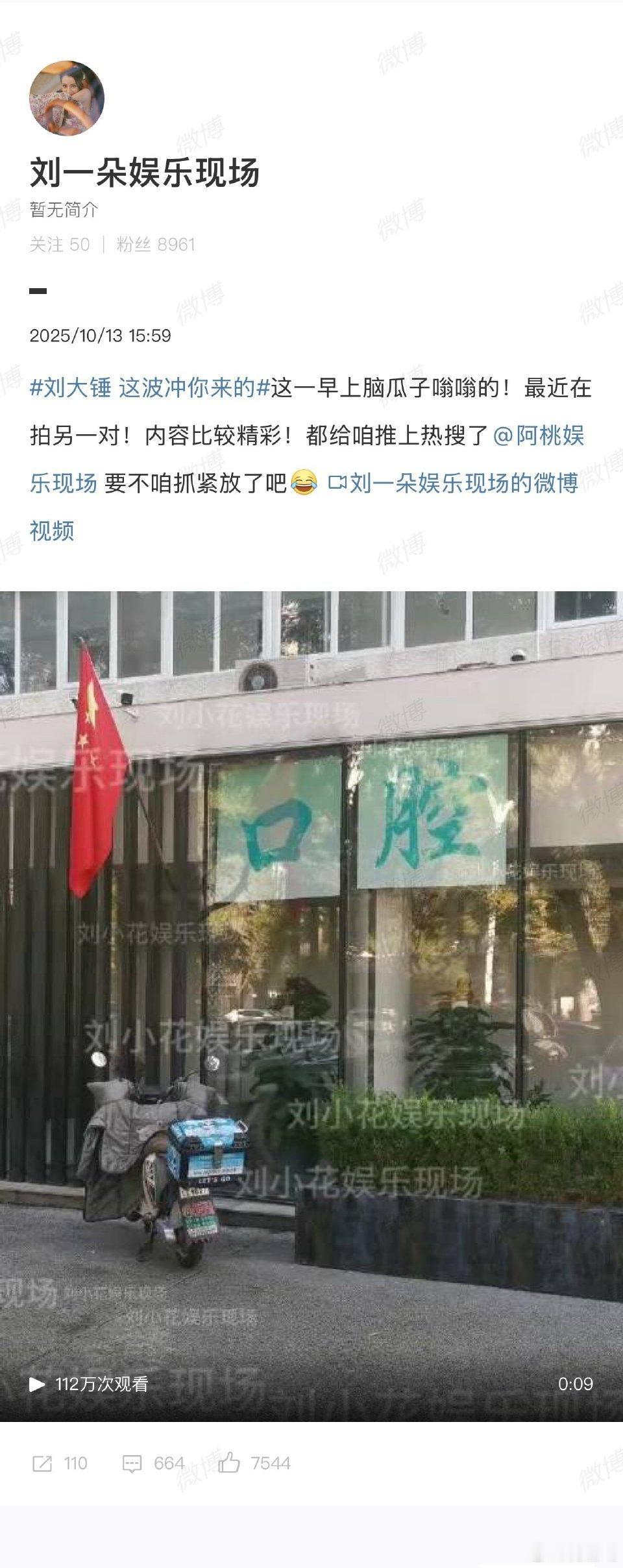 10月13日下午,刘大锤通过发博晒出视频称:“这一早上脑瓜子嗡嗡的!最近在拍另一对,内容比较精彩!都给咱推上热搜了,,要不咱抓紧放了吧[笑cry]”