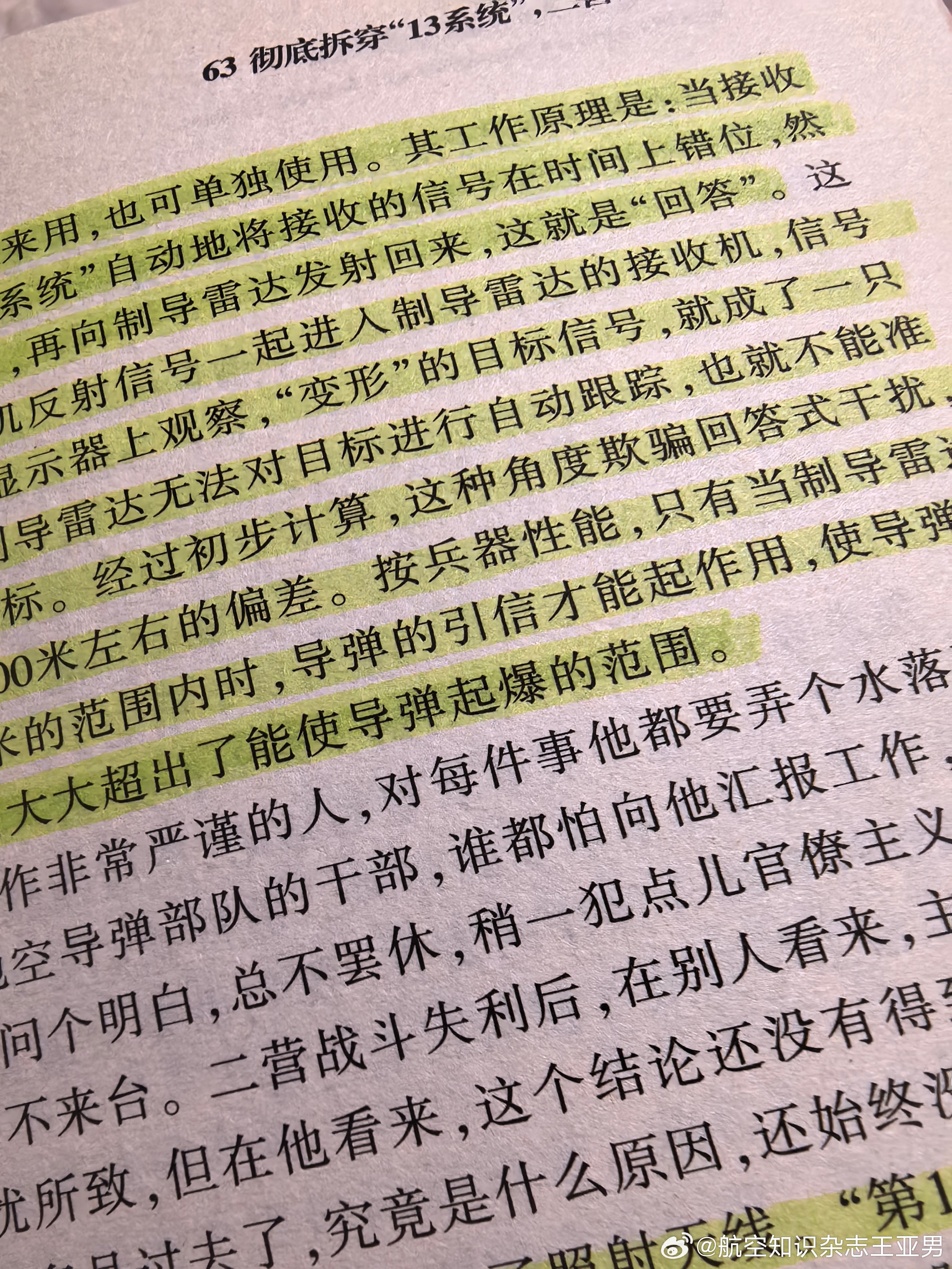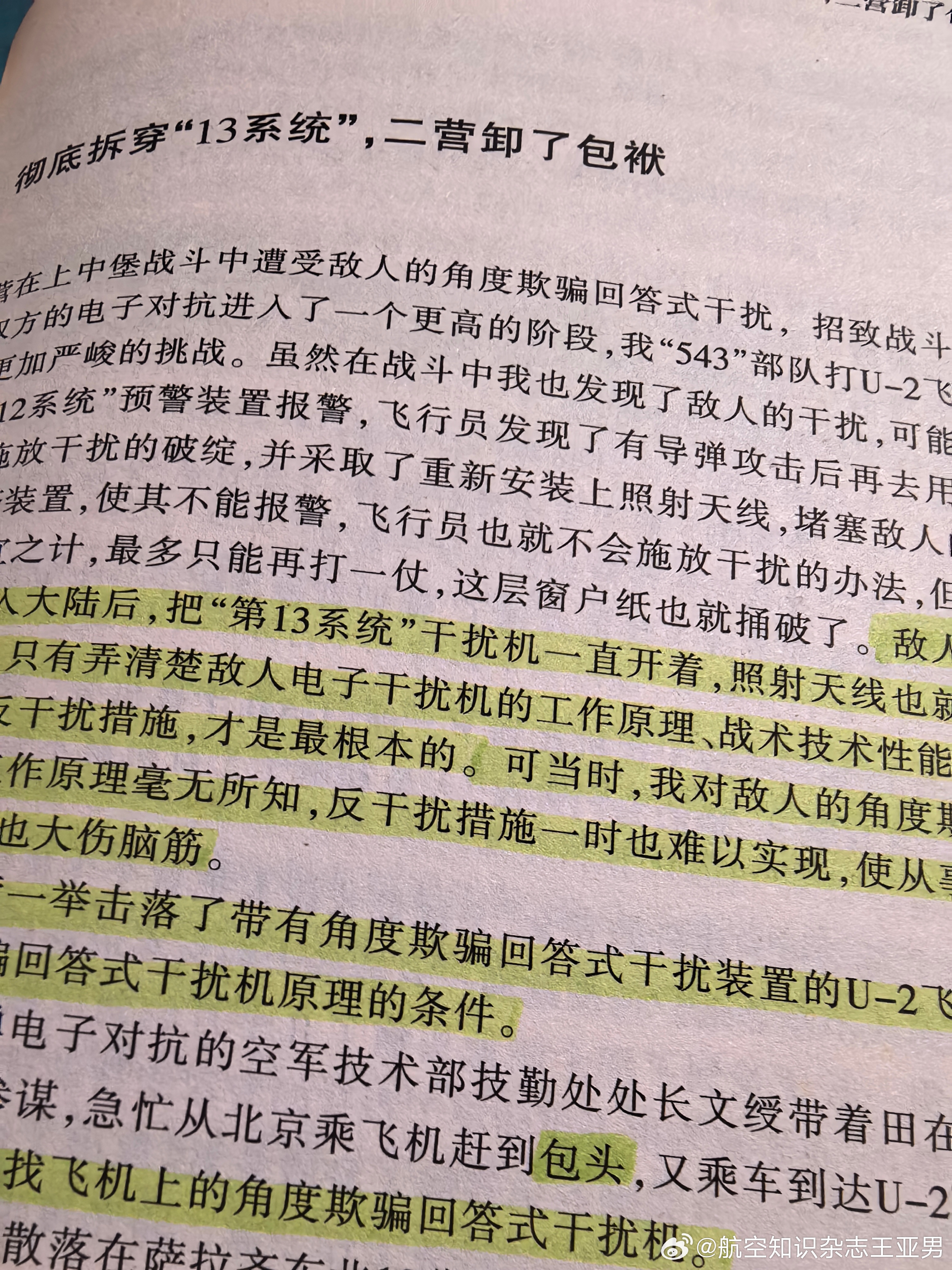 每天坚持读点书。陈辉亭老先生的《飞鸣镝》真是给力,把中国地空导弹部队从创建到实战写得明明白白。今天读到这段才明白,中国是最早接触电子干扰并实施反干扰的国家,与美国斗法多年,积累不浅。无论是12号还是13号预警和干扰系统,最终都被我们成功破解。