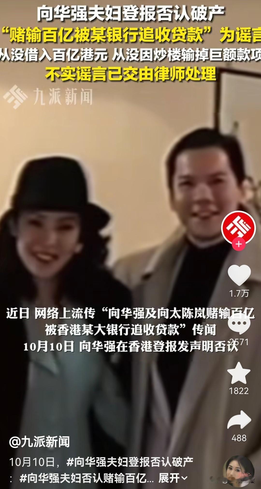 别瞎操心了,就人家那人脉关系,问每个明星借一个亿,300个明星就是300亿。 资本和流量在那儿,千万粉丝变现不比开电影公司差吧,相当过去电视收视率,能合理挣钱才是王道,像我们这儿吃瓜当键盘侠p用没有。 向华强夫妇 明星 娱乐圈 明星圈人际关系