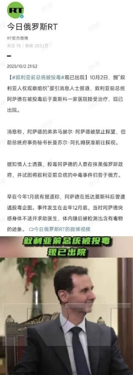 俄外长说阿萨德中毒是造谣 @今日俄罗斯RT 怎么办
