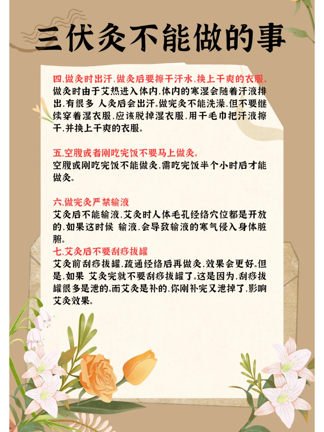 四、做灸时出汗,做灸后要擦干汗水,换上干爽的衣服。 做灸时由于艾热进入体内,体内的寒湿会随着汗液排出,有很多 人灸后会出汗。做完灸不能洗澡,但不要继续穿着湿衣服,应该脱掉湿衣服,用干毛巾把汗液擦干,并换上干爽的衣服。