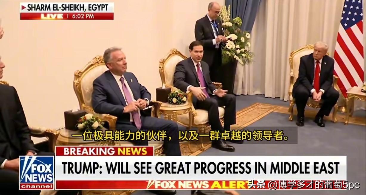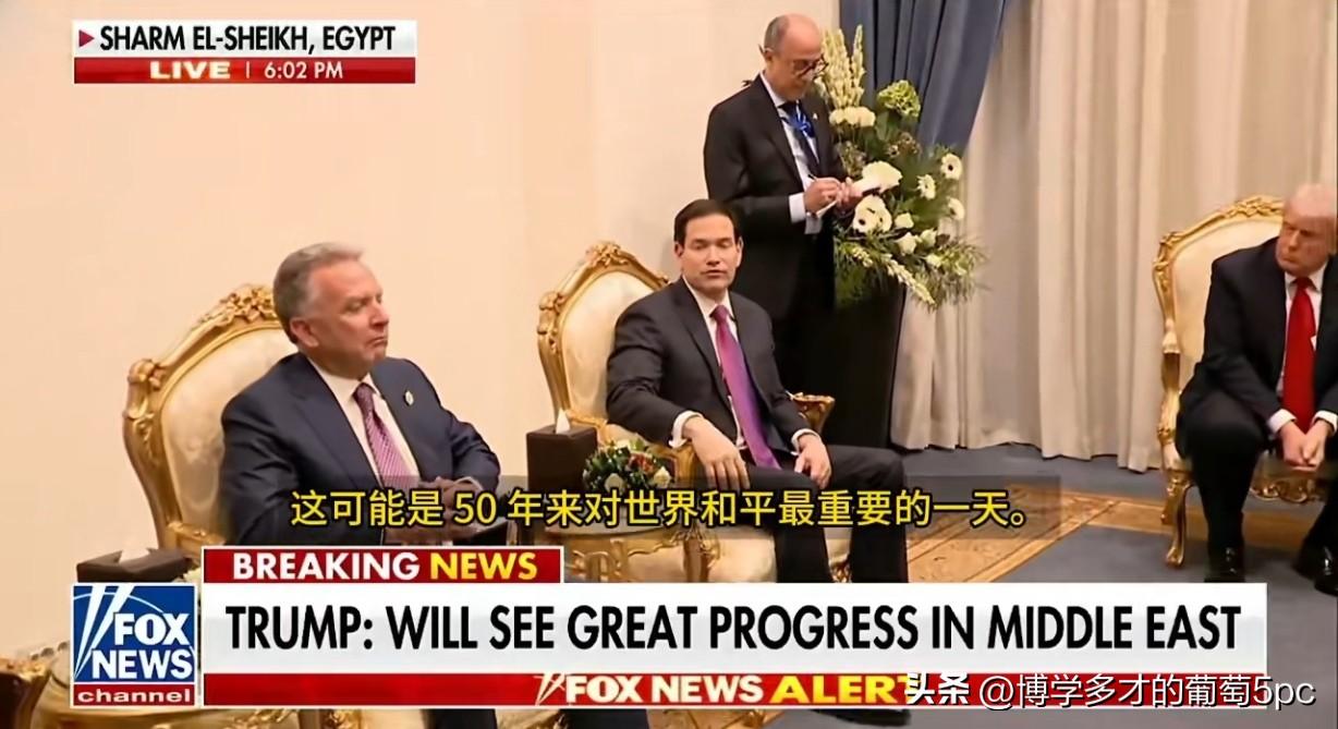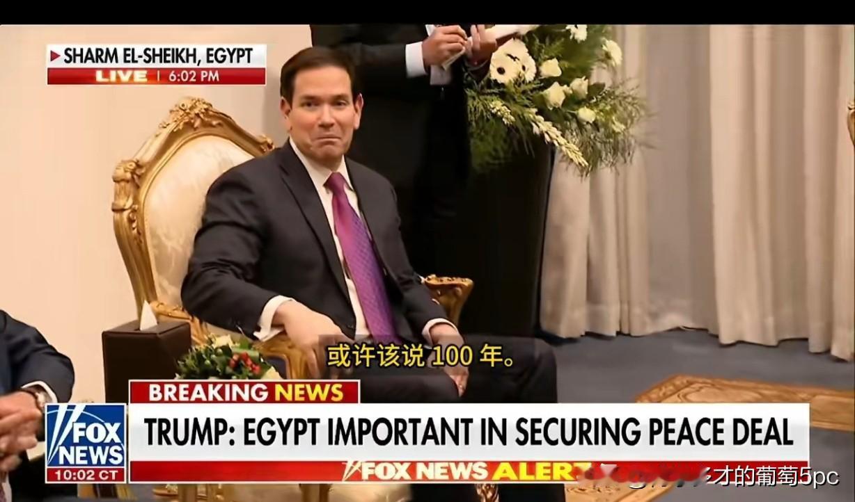 论捧逗!一段福克斯新闻在埃及沙姆沙伊现场直播显示, 国务卿马尔科·鲁比奥:“在我看来,以及在场所有人心中,这很可能是过去 50 年来对世界和平最为重要的一天。这绝非夸张之辞。” 特朗普:“才 50 年?” 鲁比奥:“也许 100 年吧。” ……