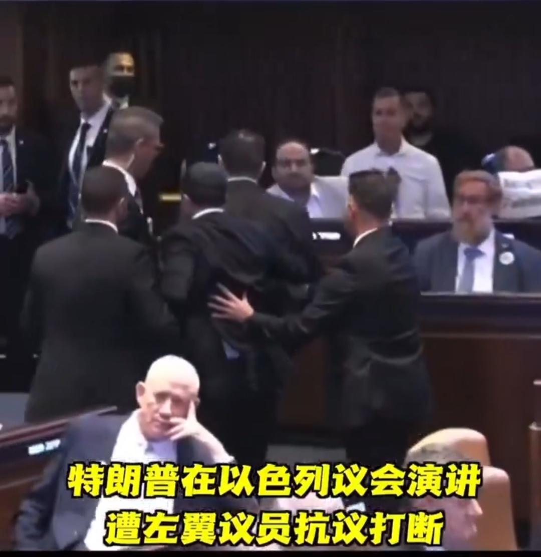 特朗普遭遇尴尬! 特朗普在以色列议会演讲,遭左翼议员抗议打断。