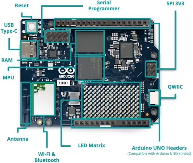 Arduino正式进入LinuxSBC(单板计算机)与AI开发板的赛道,与树莓派形成正面竞争。UNOQ不仅能运行传统Arduino项目,还支持EdgeImpulse平台,用于机器视觉、语音识别和异常检测等AI任务。