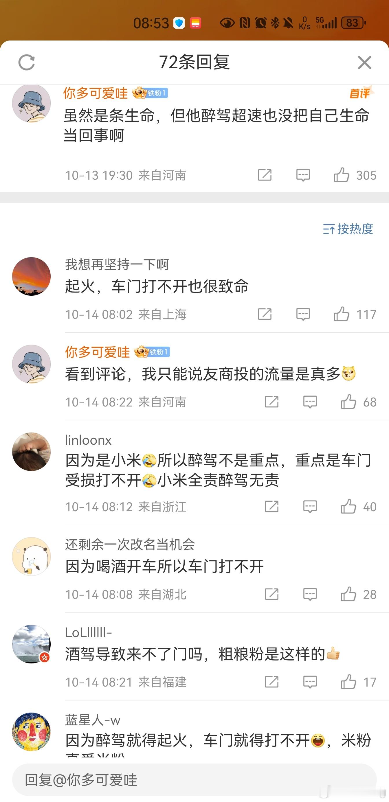 成都车祸车辆失控起火三度爆炸在评论区很多人都说他酒驾,就是他的错,他们说的对,谁叫你酒驾,而且在车受损不是很严重的情况,车门打不开,转弯后会甩尾,这又怎样解释?还有你们有没有想过万一不是酒驾的人呢?而是正常人呢?遇到这样的问题?你们怎么说?