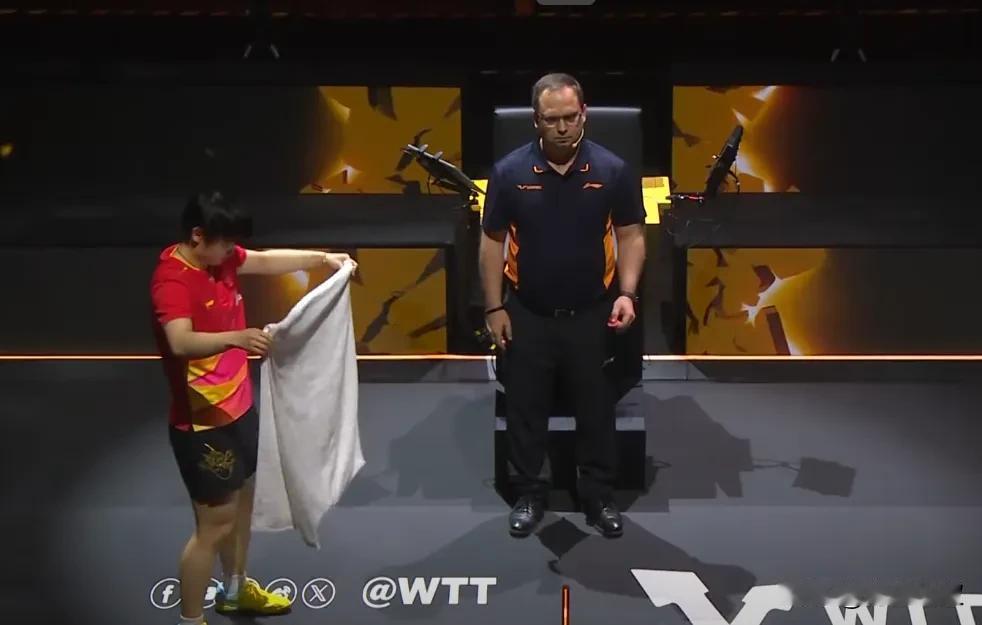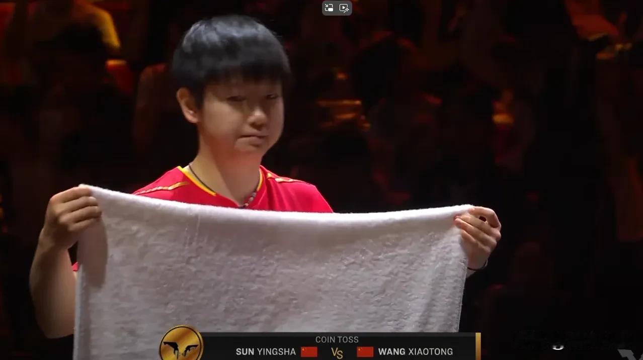 和泰国的比赛中,孙颖莎也有慌乱的时候! 第一场鳗鱼和对手打着比赛, 莎莎打开背包, 慌了! 我的大毛巾呢? 莎莎都知道, 每次比赛, 莎莎都喜欢摆弄她的大毛巾, 既可以擦汗, 又可以解压! 这次莎莎一看, 咋没有了呢? 手忙脚乱的翻开包, 找不到, 这可把她急坏了! 转了一圈, 终于找到了, 长舒一口气!