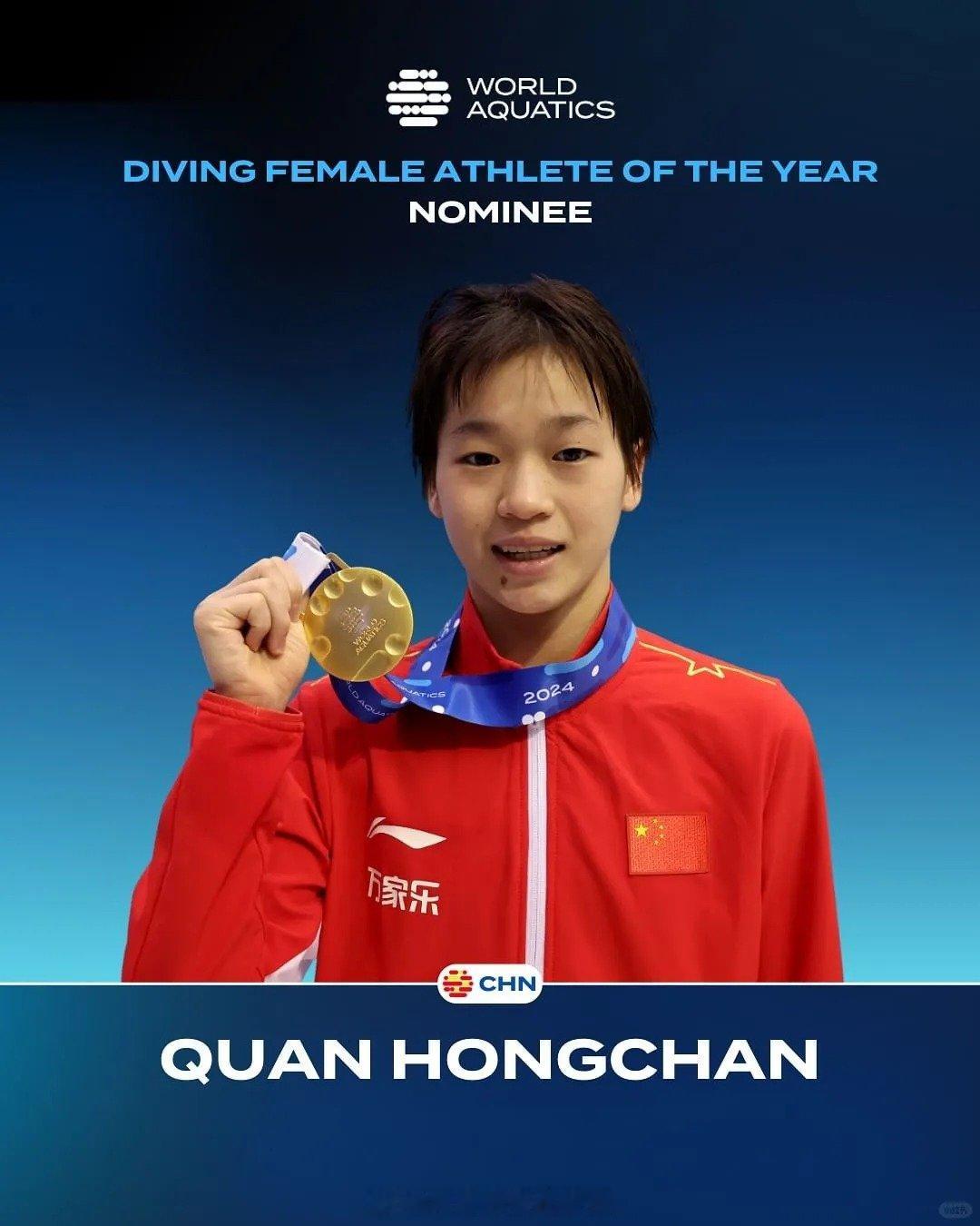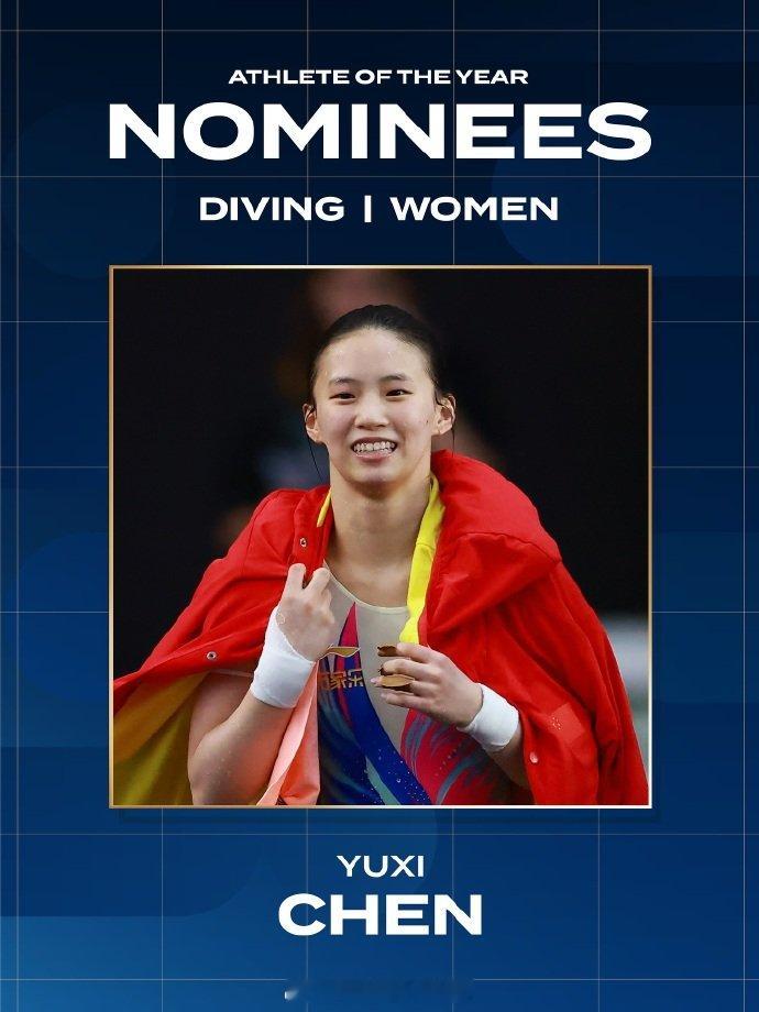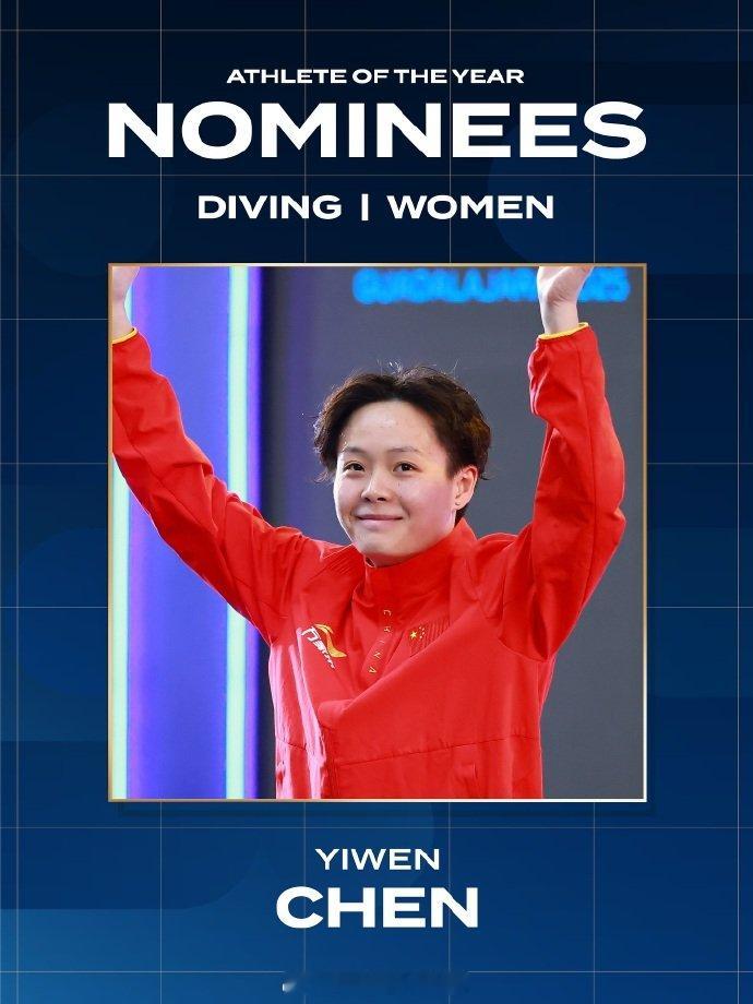 陈芋汐陈艺文入围年度最佳提名 世界泳联开启年度最佳女子跳水运动员评选,获得2024年年度最佳女子跳水运动员的全红婵,本次没有入围,入围选手如下: