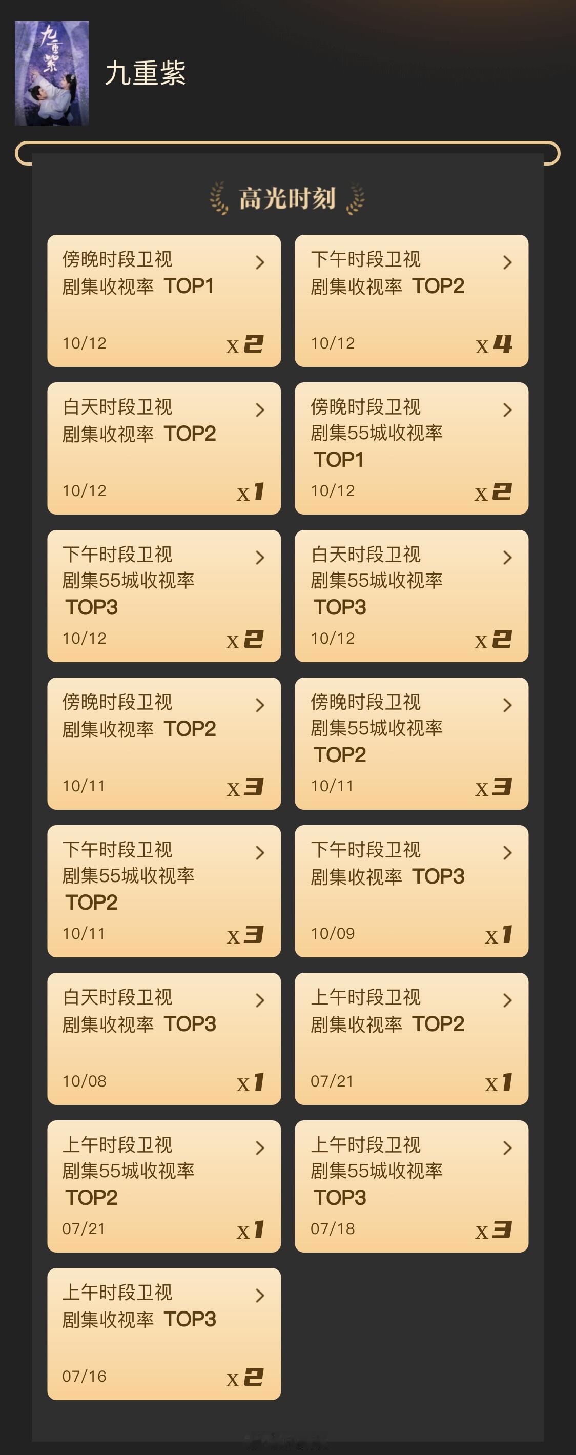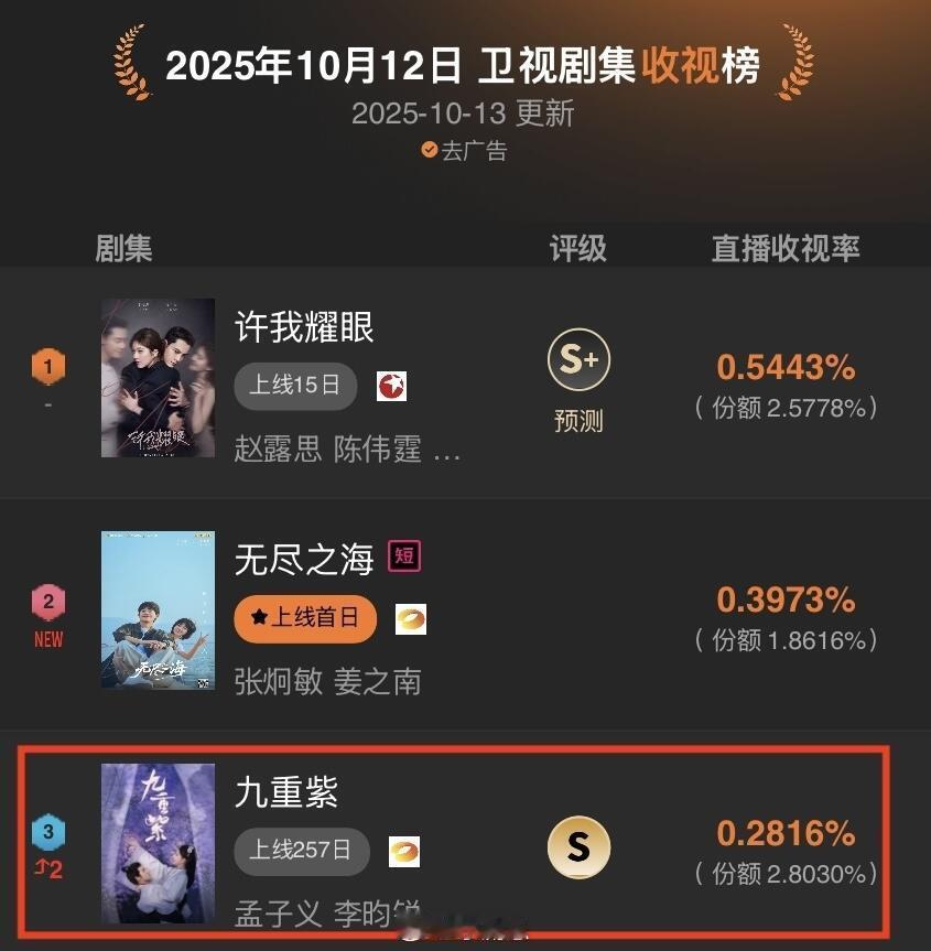 《九重紫》重播拿下卫视剧集收视前三!