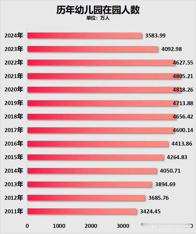 2023年与2024年,幼儿园在园人数两年合计减少了1043.56万人。 202