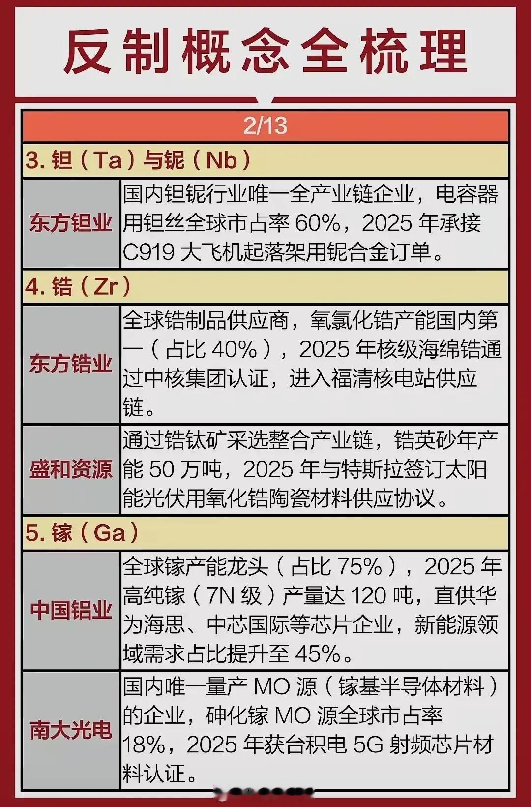 反制题材包括板块有战略金属概念、超硬材料概念、核心软件概念、卫星互联网概念、无人机反制概念、传统防御概念等等。相关概念龙头代表有哪些?