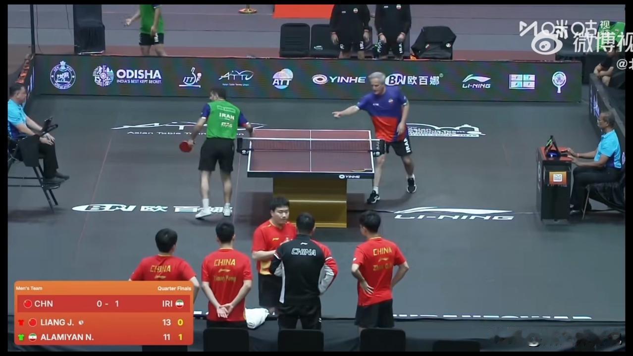 2025乒乓球亚锦赛男团1/4决赛,梁靖崑对阵伊朗的阿拉米扬,比赛本来没什么看头