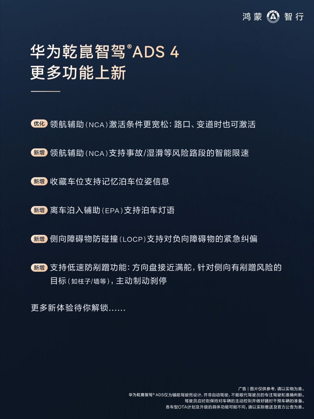 除了以上三大主要升级点,还新增很多细节上的功能。鸿蒙智行这次的升级,也代表了行业内整体的走向。阿远说车