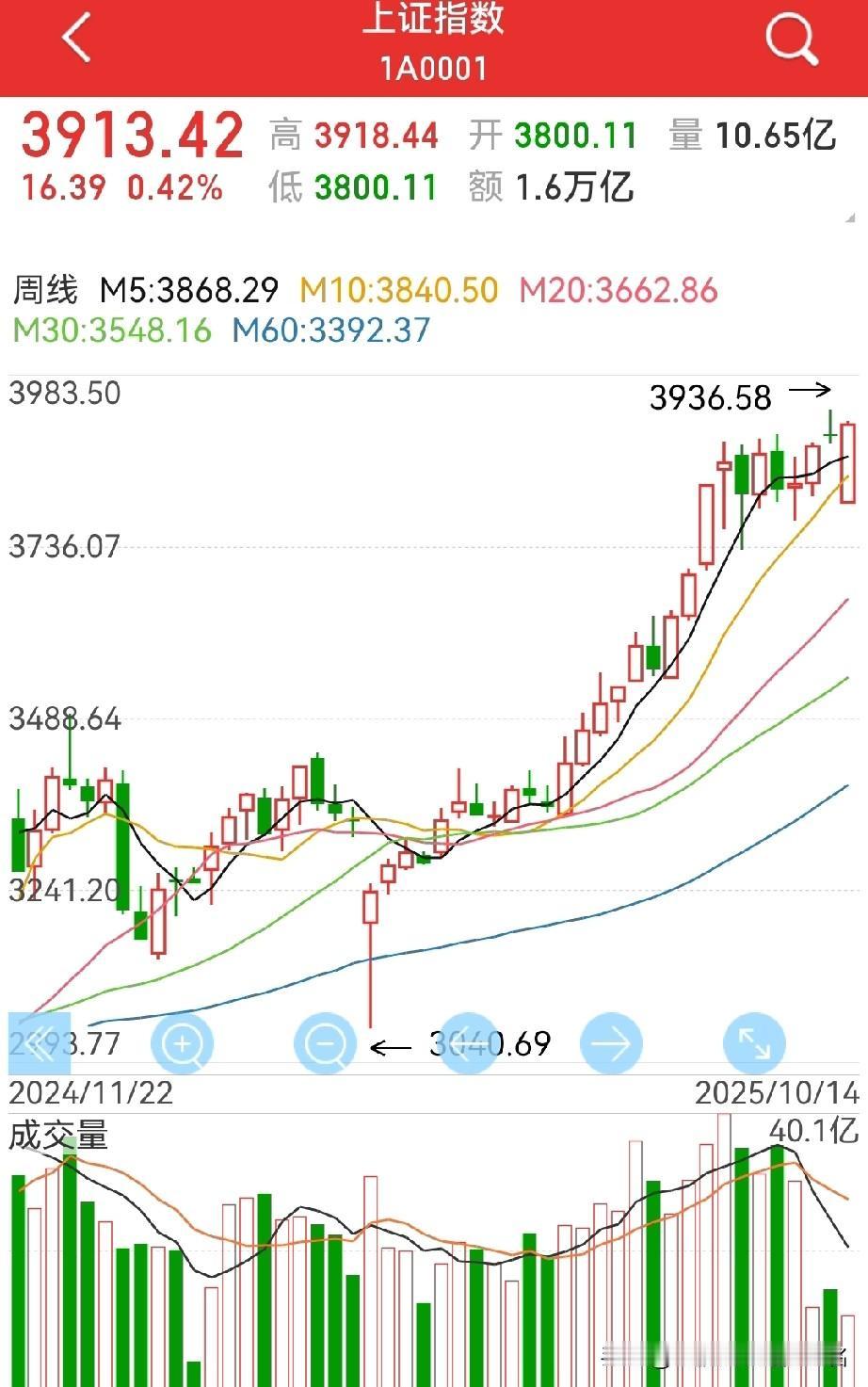 十月,“老登”翻身? 周二早盘创业板冲高回落,半导体、电池、人形机器人包括比较强劲的风电、光伏都冲高回落,而主板中,券商、汽车先拉一波,然后银行、煤、气接力,而保险、地产、工程机械、白水、电力等维持强势。 总体上看,非常符合老股民在节日期间的预测,即十月主板强过创业板,修复九月以来两者的背离状态。 九月,小登们一致嘲笑老登,但是别忘了,股市中,一但达成一致,也意味着风格要转换了。 从技术上看,创业板(下图1.周K)十月应该属于中期整理态势,指数创新高的可能性难! 而主板(下图2.周K),九月已经提前整理,十月反而会震荡走高。 两幅图一对比,一目了然! 短期(本周),上证指数应该会在5日均线附近蓄势几个交易日,毕竟从3800点上来,等于两天上涨100多点,得先消化短线获利盘。