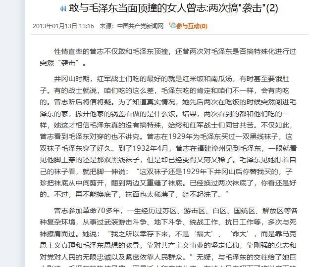 “我跟随毛主席半个世纪,并不是靠个人感情和恩怨,而是出于信仰,我对我选择的信仰至死不渝,我对我走过的路无怨无悔,那么我对我的指路人当然会永存敬意!”这是中央组织部原副部长曾志被女儿问及对毛主席看法时作出的回答 ( 麻烦各位读者点一下右上角的“关注”,留下您的精彩评论与大家一同探讨,感谢您的强烈支持!) 1998年6月,曾志在北京走了,女儿陶斯亮整理她东西时,翻出了,一封遗嘱, 遗嘱里没一句私心话,全是“别麻烦人”,甚至就连自己的骨灰,他都分成2份,一份埋井冈山树下当肥料,一半埋白云山有手印的石头下,连报丧的消息都要等三个月后再发。 也就是在这个时候,陶斯亮还发现了一点点钱,按照曾志的遗愿,希望将这些钱全部都给老干局帮需要的人。 谁能想到,写这遗嘱的人,当年在革命队伍里,是敢跟毛主席当面“顶牛”、解放后还敢叫毛主席“老毛”的人。 这事得从1928年井冈山说起,那年4月,曾志怀着孕跟部队上井冈山,累了就靠在丈夫蔡协民肩上歇着。 刚好毛主席来找蔡协民,一进门看见这场景,笑着打趣他好福气。 随后蔡协民赶紧介绍这是毛泽东,曾志早听过毛主席的名,仔细一看——他留着中分黑头发,人清瘦但眼睛亮,说话潇洒又亲切。 这是两人第一次见面,曾志对毛主席的仰慕,慢慢变成了亲近,后来一起工作就没了拘束。 之后曾志跟着毛主席下井冈山,建赣南、闽西根据地,直接听毛主席指导。 因为熟,她说话不绕弯,意见不一样还敢争。 有次贺子珍怀孕没法跟部队走,毛主席想让曾志多照看。 可曾志误会了,以为要整天守着护理,当场急了,说自己还有好多工作。 毛主席一开始没说清,语气重点:“就是要你照顾!” 曾志也不让步:“就是不照顾!” 后来毛主席才缓下来解释,不是全天护理,就是多关心几句。 曾志这才知道错了,说她跟贺子珍本就是朋友,不用提醒也会照顾。 这事成了她这辈子唯一一次跟毛主席“发火”,后来每次想起来都内疚,之后也真的尽心照顾贺子珍到生产。 解放后,曾志跟毛主席还像兄妹,她也是唯一敢叫“老毛”的人。 电视剧《延安颂》里就有这桥段:她见了毛主席,跑过去拍他后背喊“老毛”,毛主席回头又惊又喜,赶紧问她生活。 那时候曾志大多在广州工作,去北京就找毛主席聊天,1959年庐山会议,还是她促成了毛主席和贺子珍最后一次见面。 在她心里,毛主席就是革命路上的引路人,也是能说心里话的哥哥。 可对自己的孩子,曾志却格外“狠心”。 1928年她生了第一个孩子,那会儿敌人围剿,只能托付给副排长。 解放后找到孩子石来发,才知道他8岁养父母就没了,靠乞讨过活,后来分了地当农民。 曾志想让他在广州工作学文化,可石来发不肯,说有地种就知足,还得回去照顾养外婆。 曾志虽然舍不得,还是支持了——她觉得儿子能自食其力、懂报恩,特别光荣。之后石来发回井冈山种田,曾志常寄省下来的工资帮衬,石来发也从不说妈妈的身份,还教孩子日子要靠自己挣。 1969年,曾志被派到广东北部山区工作,环境苦,她天天跟乡亲们一起劳动,没抱怨过。 可广东潮湿,她年纪大了适应不了,给周总理和邓大姐写信,后来调到陕西临潼干休所。 在那儿见了不少老战友,心情好了,还在住处前后种树养花。但因为工资、医疗关系都在别处,她想回北京,就给毛主席写了信。 那时候是特殊时期,她没抱希望,没想到陕西省委书记李瑞山找她,说毛主席批了,让她选:留西安就安排工作,想回北京也可以。 曾志选了回北京,到了才知道自己已离休,组织分的房子在整修,她就住万寿路招待所,见了叶飞、江华这些老战友,大家一起等局势好起来。 1976年是最难熬的一年,1月周总理去世,曾志当场哭了,觉得国家少了好领袖;没隔多久朱老总也走了,她哽咽着说“这日子多灾多难”;最后毛主席也离开了,她跟全国人一样悲痛,去给毛主席遗体做了最后告别。 离休后曾志日子过得俭朴,组织给她分了离天安门近的四合院,她主动交回去,搬去郊区单元楼。 家里沙发巾洗得褪色还破了洞,她不肯扔;墙上挂着陶铸的油画像,餐桌铺着发黄的塑料台布。 每天早上她提布袋子去买菜,来回几小时也不觉得累,说能锻炼身体。 平时很少吃肉,只有客人来才买。她不喜欢麻烦人,晚年基本不出门,还把孙子孙女接到北京供他们上学。 她最后一个生日,把三个子女叫到身边,跟两个儿子说,当年为了革命丢下他们,希望他们理解,以后好好过日子。 她去世后,虽然没通知人,还是有三百多人自发来送。家人按遗嘱办了后事,没搞任何仪式。 曾志没给家人留值钱东西,可她的精神、不搞特殊的家风,比啥都金贵。 她是革命战士,也是母亲,心里总装着别人。