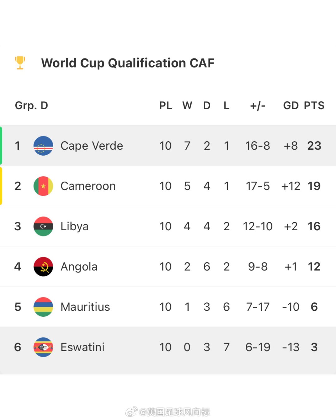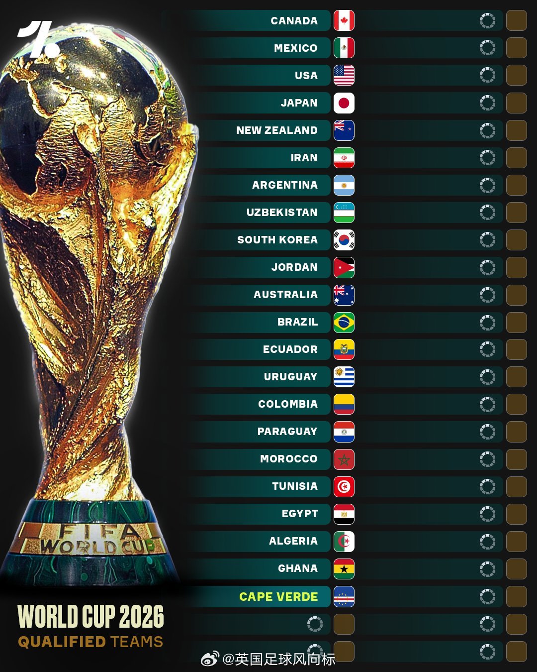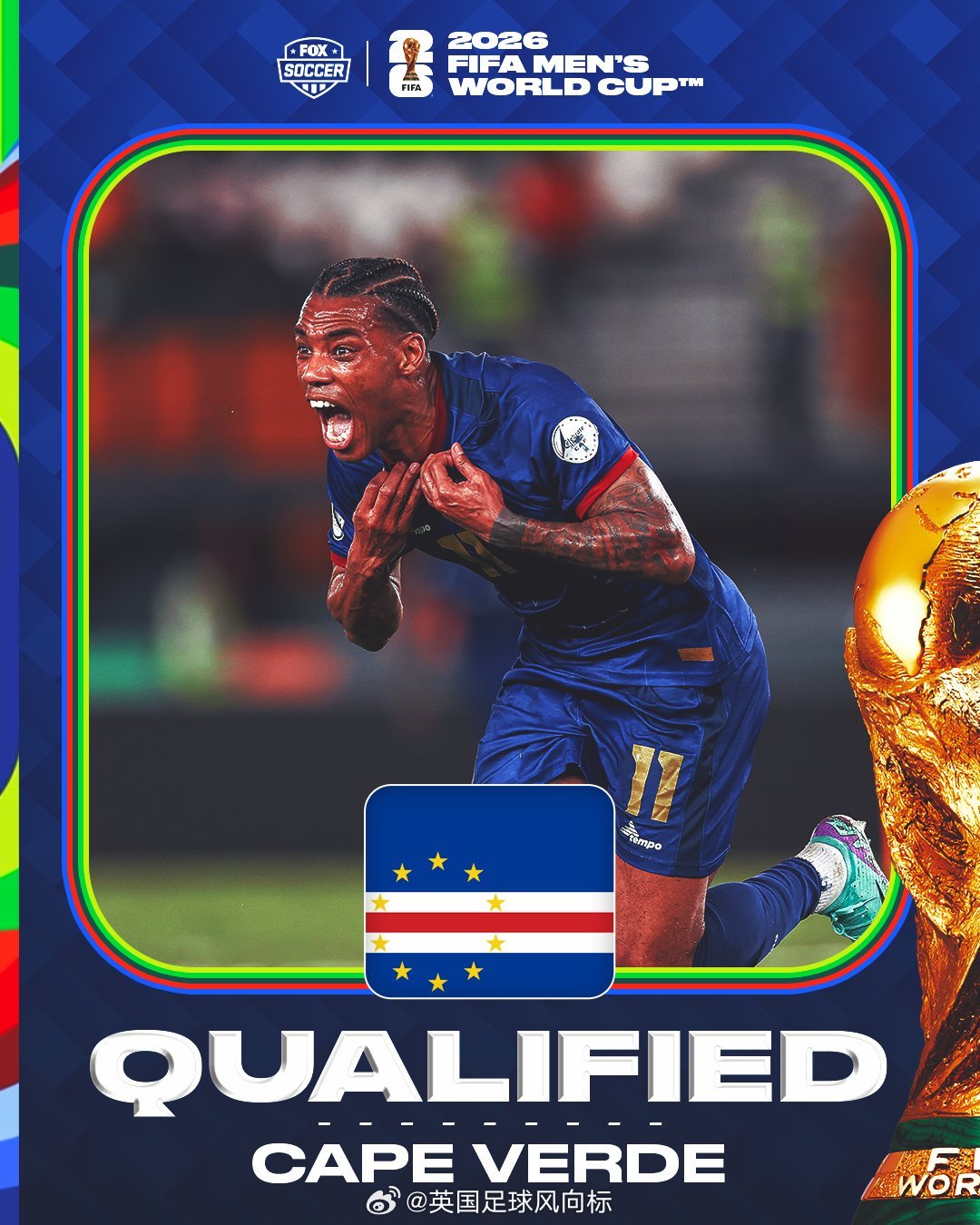 非洲小国佛得角,力压拥有多名五大联赛球星的喀麦隆,成功从世预赛非洲区D组出线,成为第22支获得2026世界杯入场券的球队。