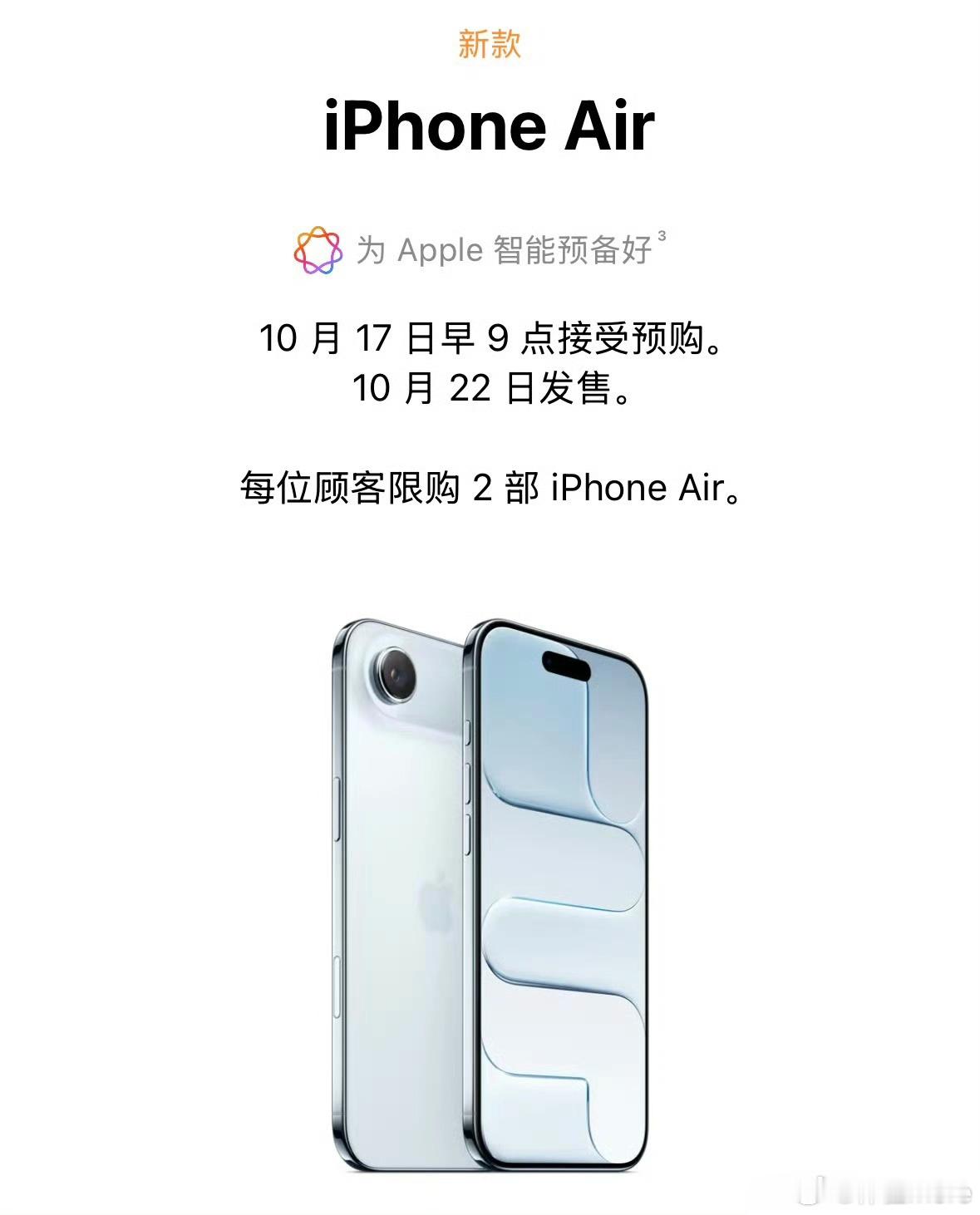 iPhone Air要开售了,移动、电信、联通均提供eSIM支持。甚至全球通用,这点比海外版强[二哈]。