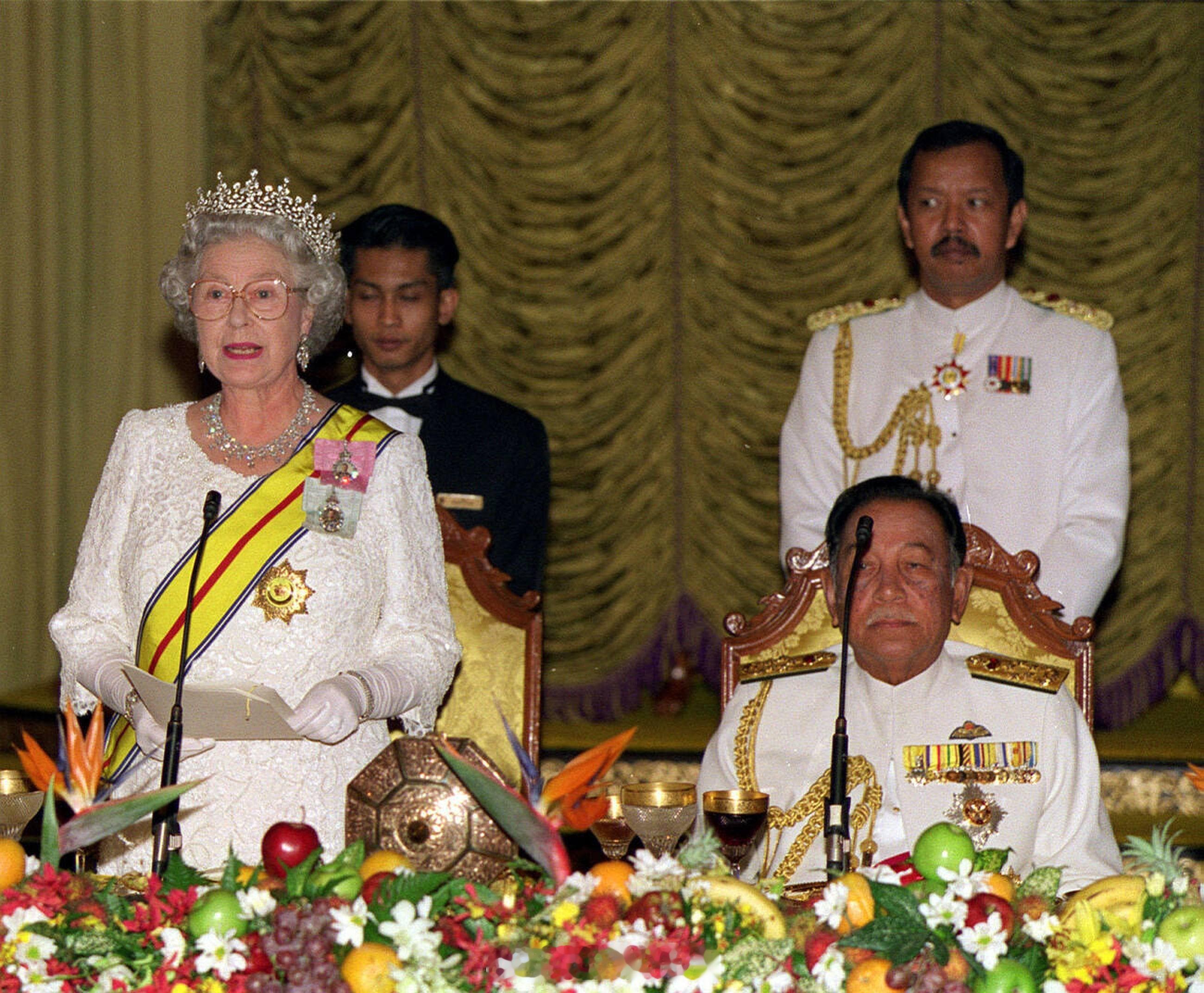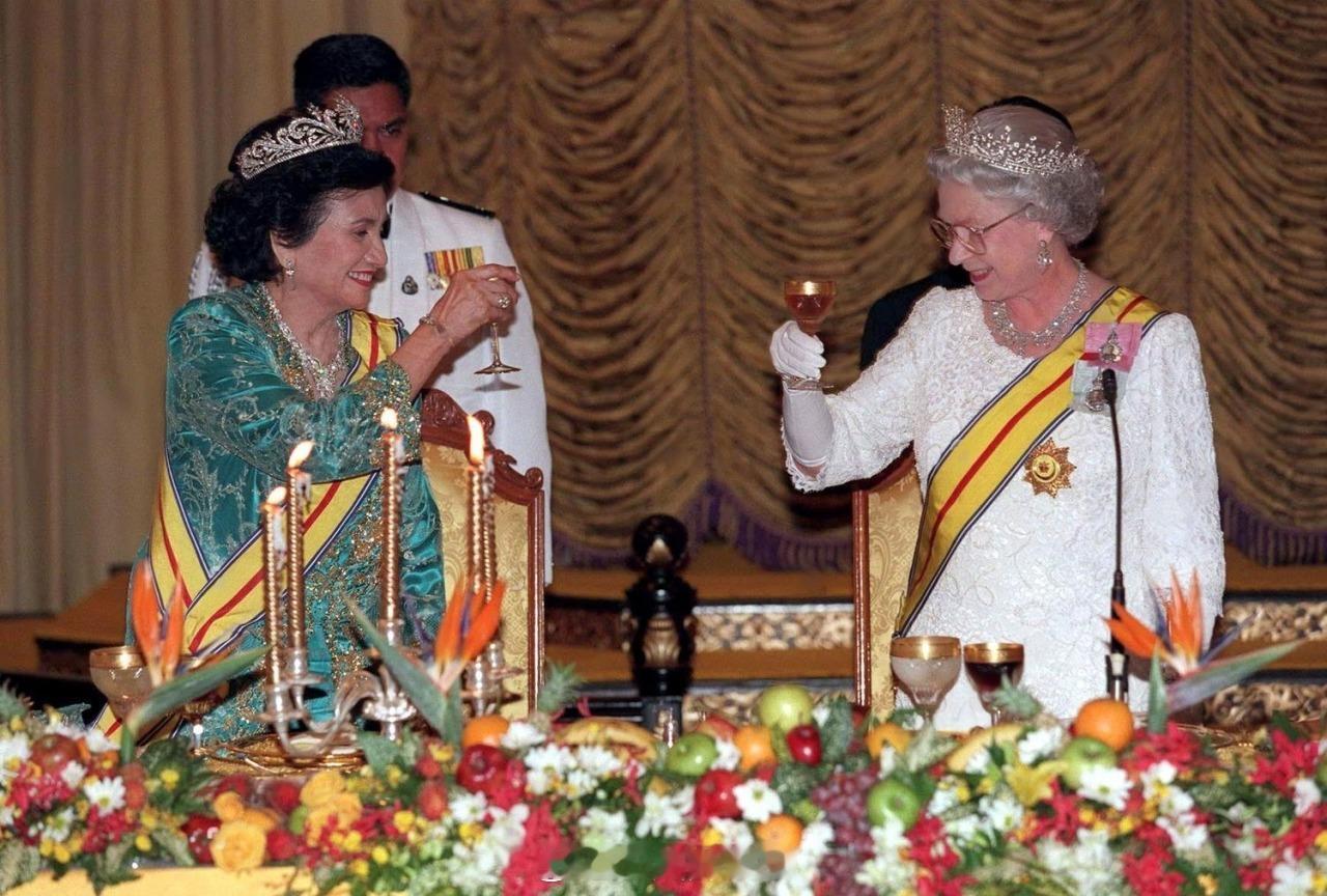 1998年9月22日,伊丽莎白二世女王和爱丁堡公爵菲利普亲王在马来西亚出席国宴🇲🇾