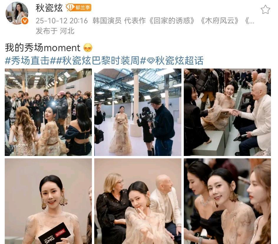秀场直击:46岁秋瓷炫的巴黎时装周造型,秋瓷炫的秀场moment,好美呀! 给人的第一感觉就是:温柔,优雅,带点妩媚,带点仙气飘飘…… 不得不说,这样的造型look,百看不厌呀,怎么看怎么美,越看越养眼! 各位,你们觉得秋瓷炫的这个造型怎么样?