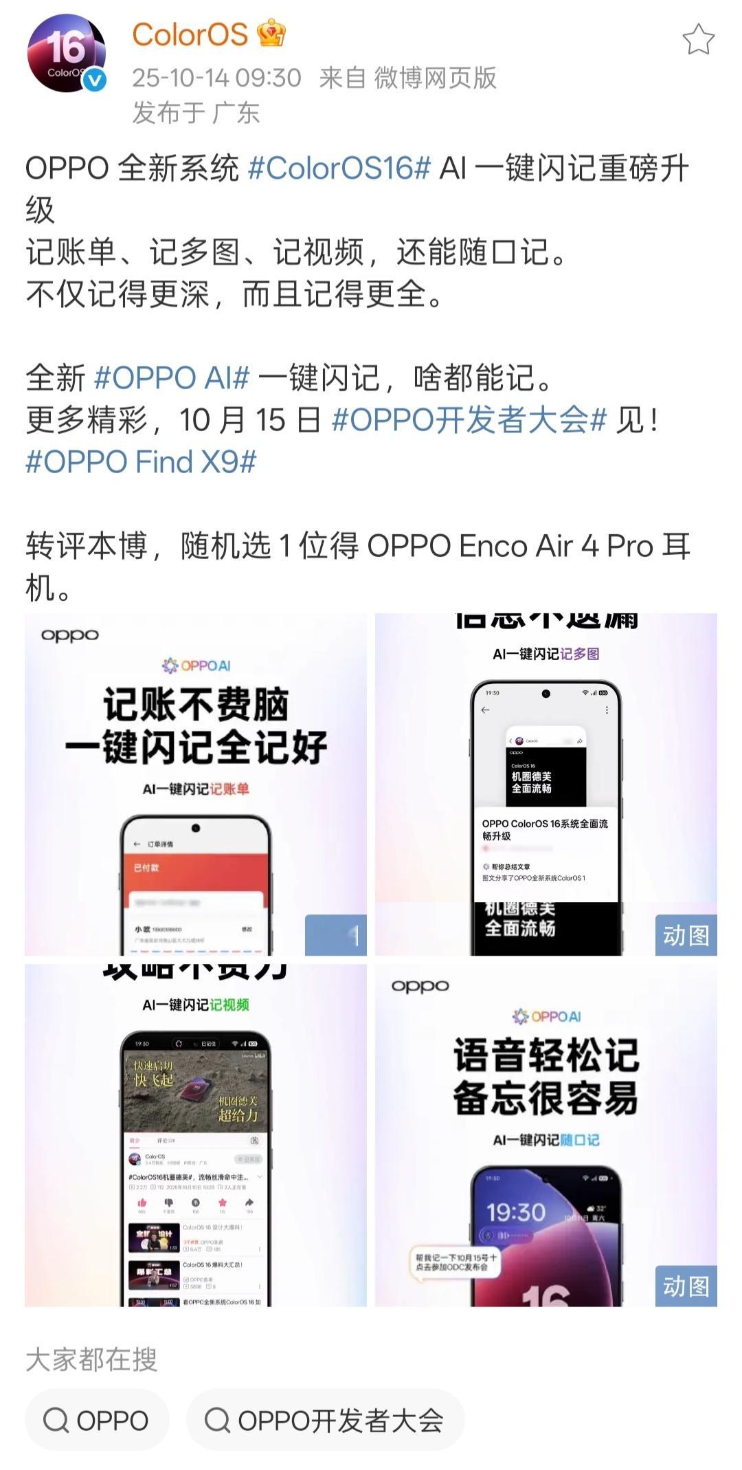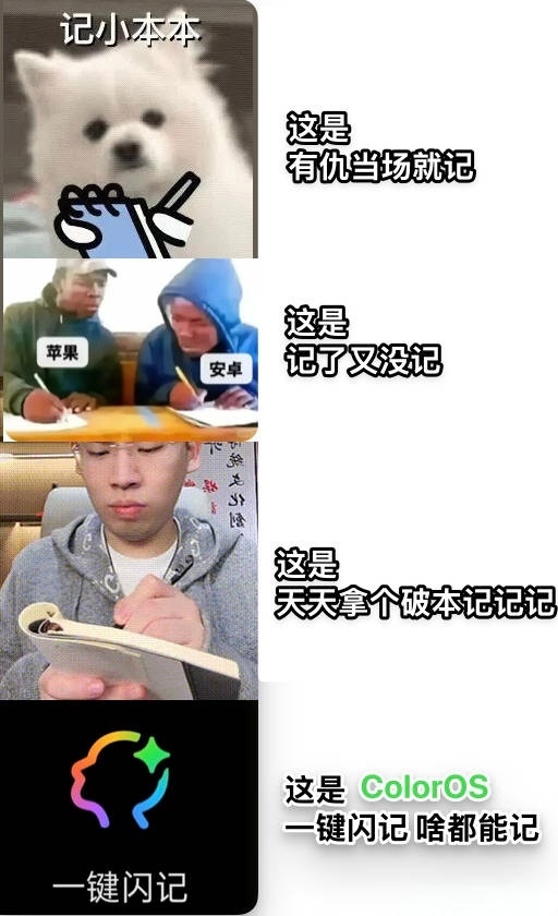 来了,小布记忆变得更强更贴心了:居然能一键闪记我平时的「取餐码」、「账单」、「多图帖子」、「随口语音记」等等,只需按一下,一键闪记秒上云。ColorOS16全面流畅