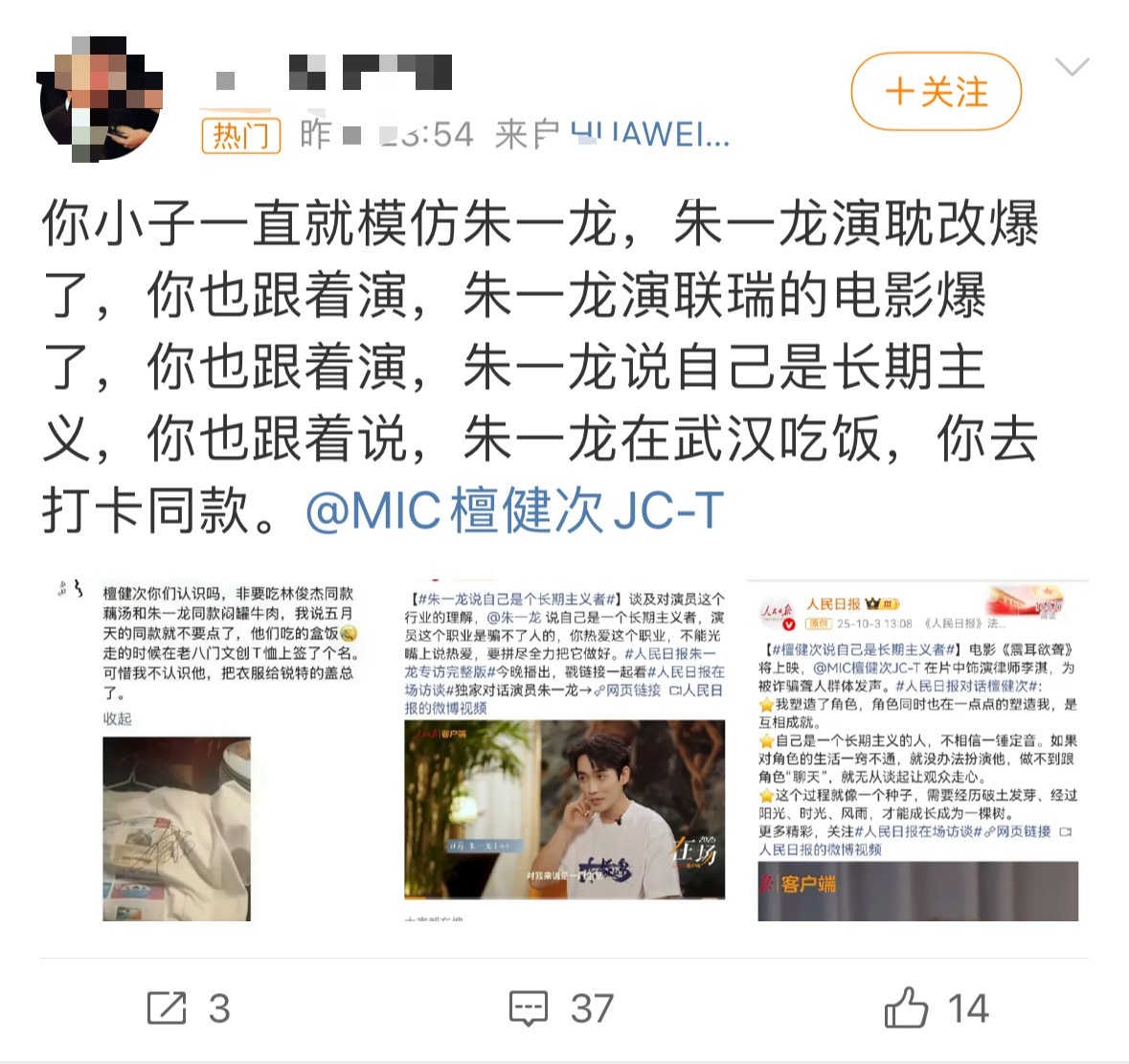 朱一龙粉丝以为在内涵自己,应激开始嘲讽檀,说他是copy精,模仿朱一龙路线,说了两天,直到檀丝忍无可忍…