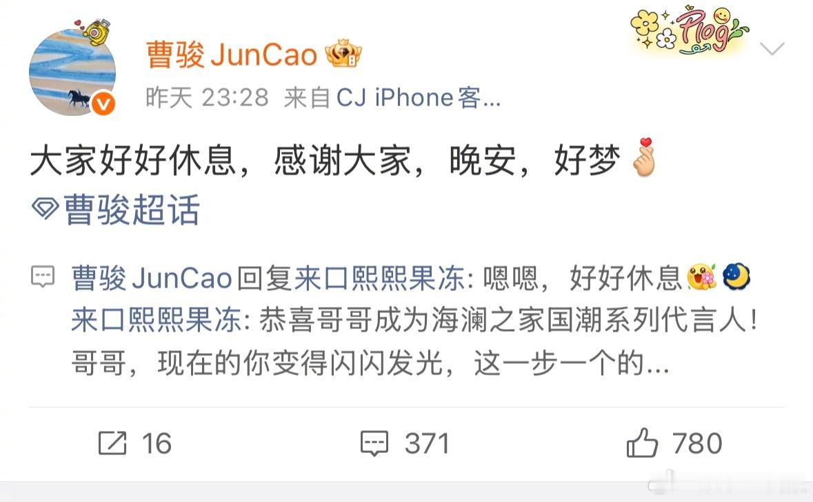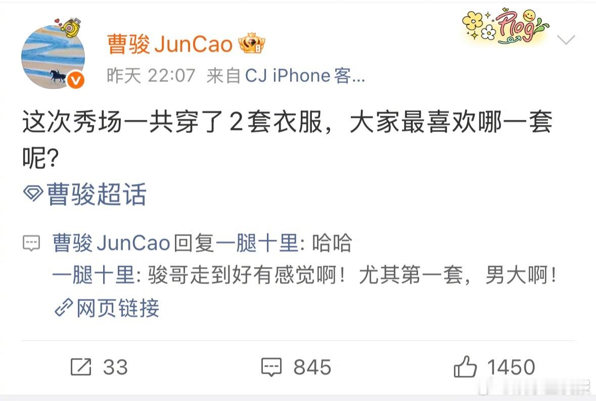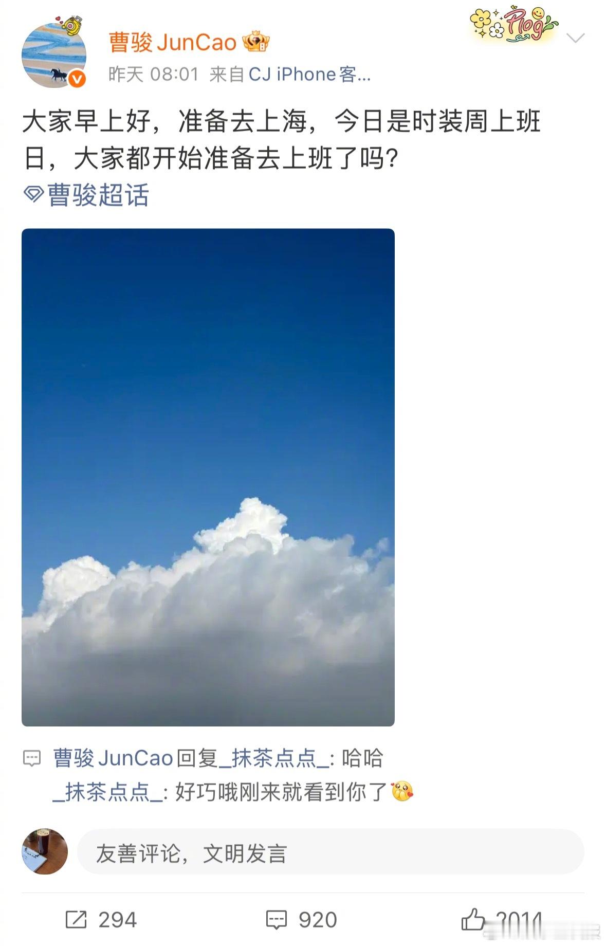 曹骏一款贴心报备型男友曹骏报备式记录走秀的一天 救命!有朝一日竟然还能感受到我担的“报备式记录”!曹骏这也太戳少女心了!上海时装周走秀的一天,他把每个关键节点都同步给粉丝从清晨出发说“大家都开始准备上班了吗”,到结束后分享顺利完成的喜悦,睡前还不忘道晚安~这种细碎又贴心的分享,完全是“贴心报备型男友”既视感,这种真诚真的太圈粉了!