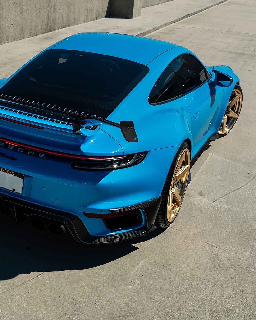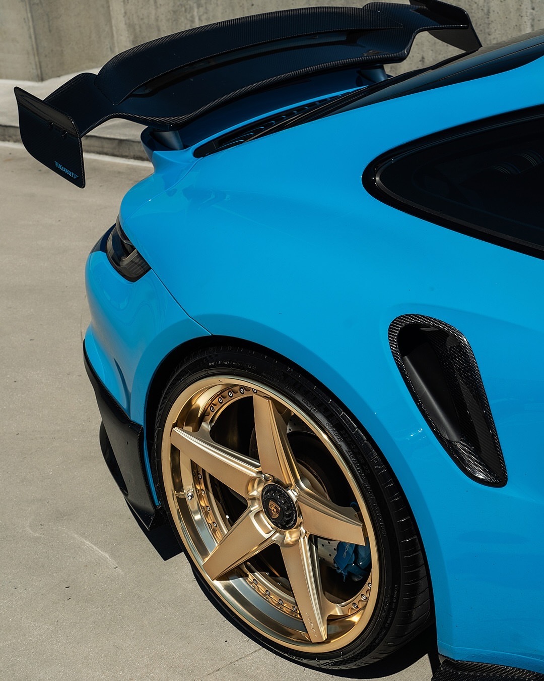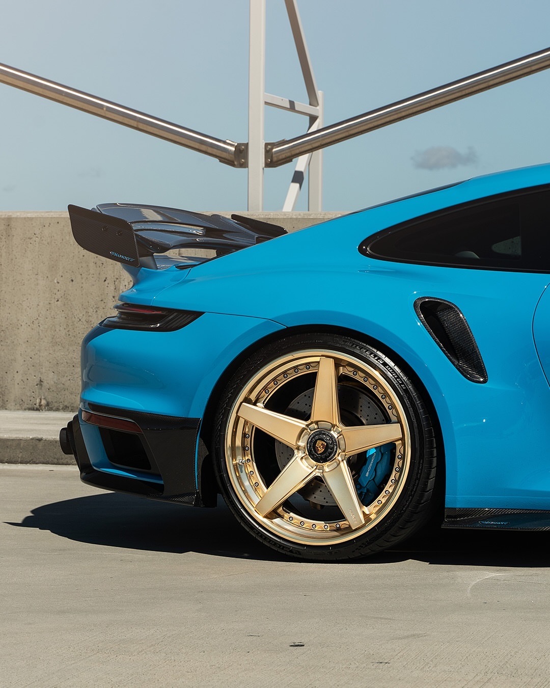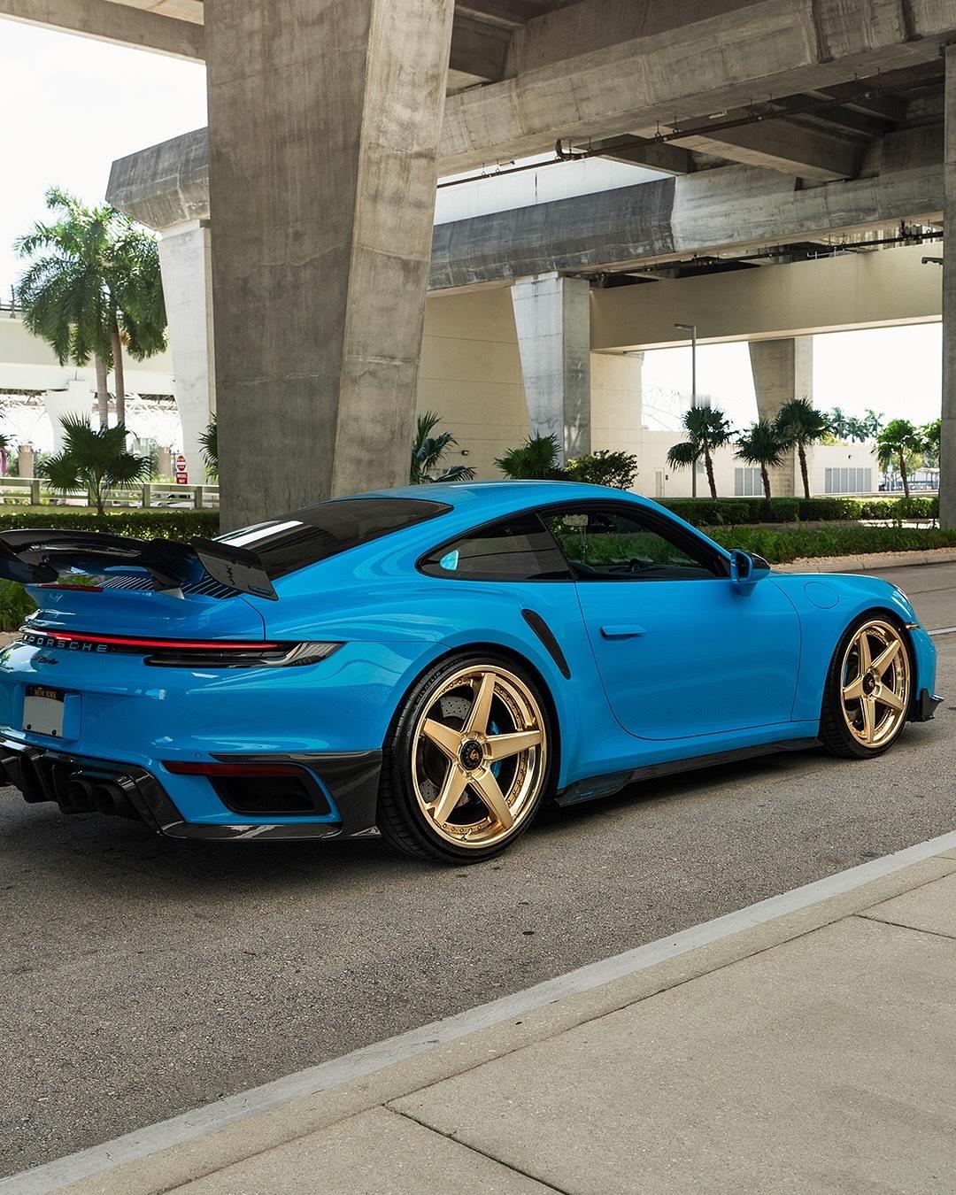 我们喜欢它明亮!PTS里维埃拉蓝的保时捷992TT-S,配以微妙的Mansory碳纤维气动套件和全金RETROseries RS5.3轮胎,尺寸为21x9.5/22x13 🔒