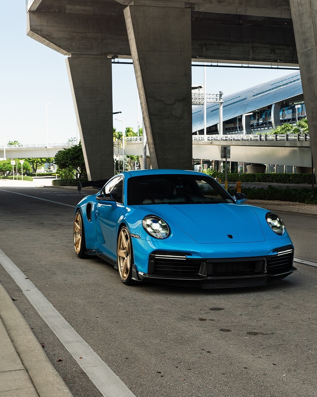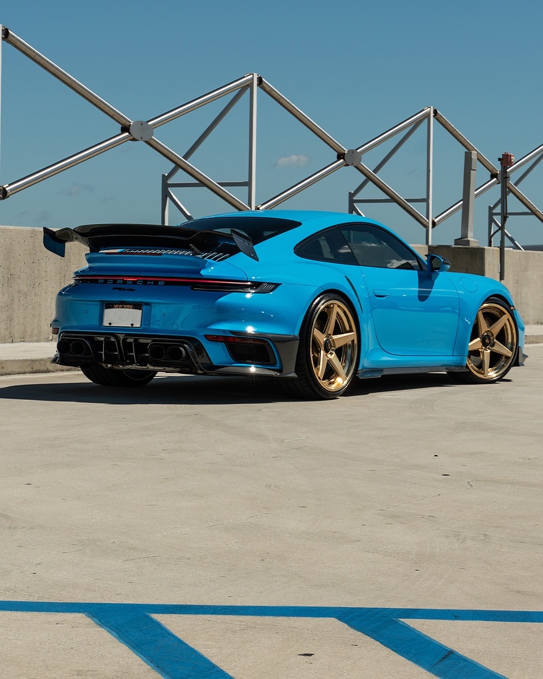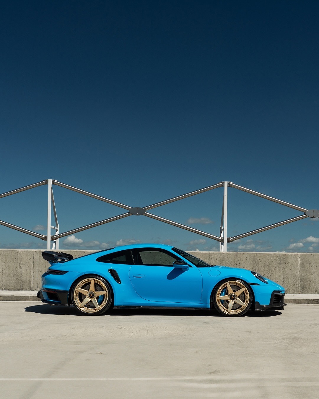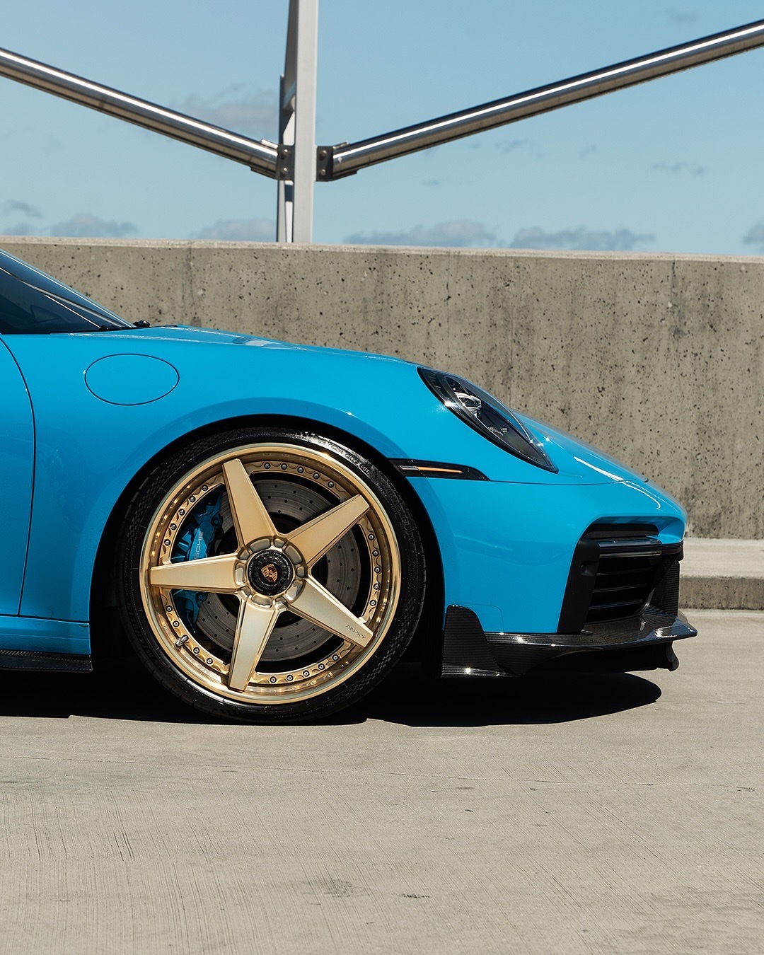 我们喜欢它明亮!PTS里维埃拉蓝的保时捷992TT-S,配以微妙的Mansory碳纤维气动套件和全金RETROseries RS5.3轮胎,尺寸为21x9.5/22x13 🔒