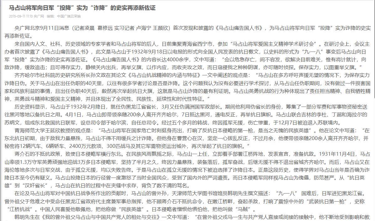 1932年,马占山宣布向日本投降,顿时国内上下骂声一片,然而在受降仪式上,马占山竟以不识字为由,拒绝在协议上签字!一个月后,他更是从日本人手里骗走2000万元! ( 麻烦各位读者点一下右上角的“关注”,留下您的精彩评论与大家一同探讨,感谢您的强烈支持!) 1932年,“马占山投日”的消息一出来,全国人都懵了,江桥抗战里打响抗日第一枪的英雄居然投降了。 可没俩月,又传来消息,马占山带着一卡车一卡车的枪支弹药,从日本人眼皮子底下跑了,还公开说自己是“诈降”,要接着跟日军干! 这事儿绕得人晕乎,其实全是马占山憋的一肚子巧劲,为了抗日,他硬是演了一出“卧薪尝胆”的戏。 马占山的命,打小就苦,吃不饱饭,早早去地主家放马,倒练出一身好马术,骑马跑起来比兔子还快。 有次牧马,一匹马疯了跑丢,他找了半天没找着,回地主家报信,结果地主一口咬定是他把马卖了,把他关大牢里毒打,还跟他爹娘要赎金,说不给钱就让他坐一辈子牢。 老两口砸锅卖铁凑够钱把他赎出来,没几天,那匹丢了的马自己跑回来了。 马占山去找地主讨钱,地主不仅不给,还骂他们家是“天生穷骨头”。 爹娘怕丢了活计,劝他认怂,马占山又气又委屈,当晚就跑了,去哈拉巴喇山当了土匪。 可马占山这土匪跟别人不一样,他不抢穷苦人,专找为富不仁的地主、商人下手,加上他枪法准、马术好,为人还讲义气,没几年就成了土匪头子,在山上待了十几年。 直到辛亥革命爆发,听说要推翻封建朝廷,马占山带着弟兄们下山,加入了东北军,从最底层的哨长做起,凭着敢打敢冲的劲儿,立了不少功,慢慢被张作霖看中,一路升到军长。 张作霖死后,张学良掌权,马占山成了他的得力干将,管着十几个县的防务,手里有了实权。 1931年九一八事变,日军炮轰东北军大营,没几天沈阳、长春、吉林就丢了,接着往黑龙江打。 马占山急得满嘴起泡,好几次找张学良请战,说就算拼了命也要挡住日军,可国民政府和张学良都下了“不抵抗”命令,让部队往后撤。 马占山实在忍不了,召集手下将士说:“谁占咱们的地、害咱们的人,我就跟谁拼命,这是我守土的本分!” 将士们跟着他喊,抗日的枪声在嫩江边上响了。 他把主战场选在嫩江铁桥,先把老百姓撤到后方,再带着士兵没日没夜修工事。 张学良被他打动,调了一个营来帮忙。 11月4号,4000多日军带着飞机、坦克、大炮来攻桥,马占山早把部队分成三路埋伏好。 他知道自己人少、武器差,硬拼不行,就等日军大摇大摆进了射程,才喊“打”,子弹像雨点似的砸过去,日军指挥官慌了,以为对面有重武器,带着人撤退。 这一仗打了一天一夜,日军死了上千人,马占山首战告捷。 可接下来半个月,日军越打越多,粮草弹药不断增援,马占山这边却弹尽粮绝,伤员没药治,也没人来救。 最后没办法,只能带着人撤出省城,江桥抗战结束。但这是中国军队第一次重创日军,全国人都佩服马占山,各地掀起“援马行动”,老百姓捐钱捐物,连学生都省零花钱寄给他。 马占山把营地扎在海伦,一边招兵买马,一边打游击战,搅得日军不得安宁。 可他一次次给蒋介石、张学良发电报求支援,得到的只有“静候命令”。就在他快绝望时,日军找上门来——他们建了伪满洲国,想让马占山当伪黑龙江省长。 来谈判的板垣征四郎说:“只要你不跟日军作对,省长就是你的。” 马占山看着自己的队伍,新招的学生兵拿木头枪练习,没几发子弹,真打就是送死。 他咬咬牙答应了,可板垣拿文件让他签字时,他说:“我没念过书,不会写字。” 他知道,字一签就成千古罪人,他要的是拖延时间。 见板垣犹豫,马占山沉下脸:“我是军人,说话算话,你们还信不过?”板垣怕他反悔,赶紧收了文件。 “投日”的骂声铺天盖地,马占山全咽了。 他表面对日军恭恭敬敬,暗地里却利用省长身份囤物资,并秘密将12辆汽车、6辆轿车、2400万元款项、300匹战马及其它军需物资运出城外。 日军盯着他,想编散他的部队,他都圆滑躲过去。 1932年4月,马占山给日军司令送了两匹好马表忠心,趁机说: “老部下不安分,我去看看,免得给您添麻烦。” 得到准许后,他连夜带着物资和亲信往黑河跑,一逃出控制区,就发电报说自己是“诈降”,还成立“抗日救国军总司令部”,收复了黑龙江大半领土,最多时有6万兵力。 可后来手下一个将领叛变,部队损失惨重,他只能退到苏联。 回国后,国民政府给了他“司令”头衔,却没实权,马占山心凉了,称病躲到北平。 但毛主席很佩服他,说他年过半百还在抗战前线,精神可嘉。 1948年北平解放,毛主席邀请他为统一出力,他二话没说答应了。 1950年,看着新中国的太平景象,马占山心满意足地走了。 马占山这辈子,从放马的穷小子到土匪,从抗日英雄到“汉奸”,再到建国功臣,起起落落没忘家国大义。