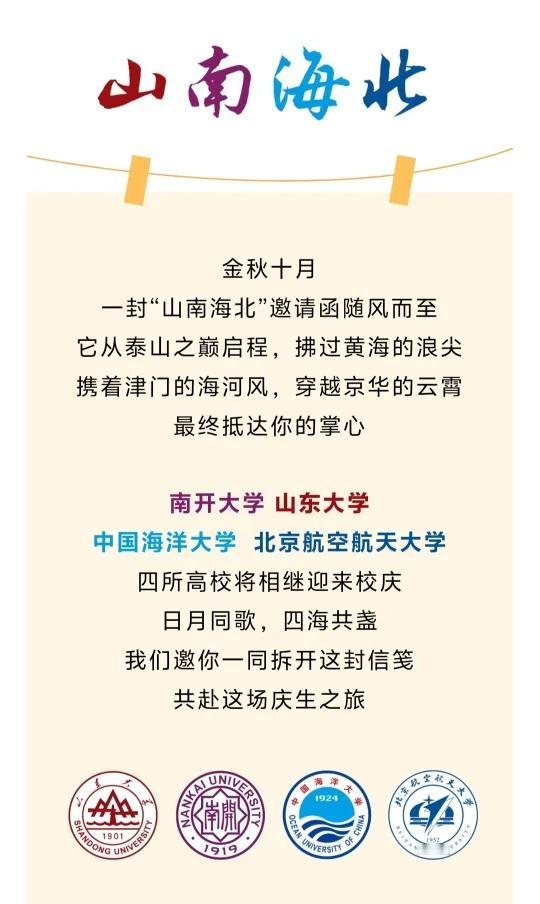 四校联动了 开子又有新组合了[棒R][棒R] 校庆 山东大学南开大学中国海洋大学 北京航空航天大学 共赴山海向未来 上岸上岸 985大学