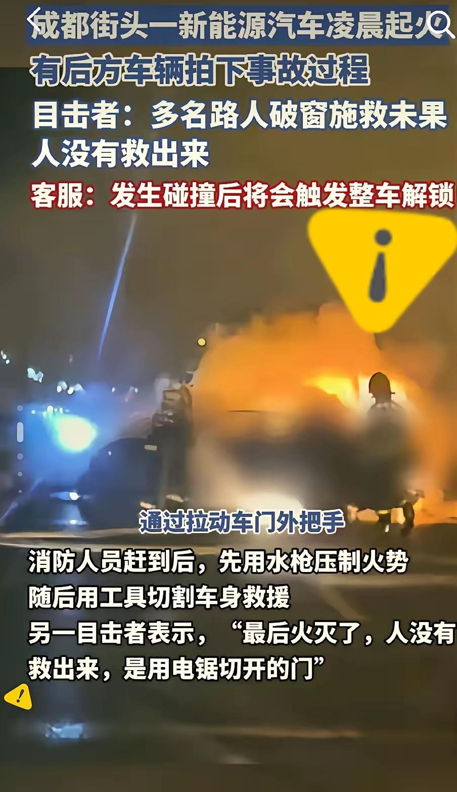 成都车祸后,我改了3个开车习惯:好看和便利,真的没命重要 刷到成都天府大道车祸的视频,看着路人想救却打不开车门的焦急,直到消防用电锯切开车身的画面,心里像被重锤砸了下。作为开了8年车的老司机,我连夜做了3个关乎安全的决定,想跟所有车主唠唠。 换车死磕手动挡,不是守旧是惜命。有人说手动挡过时,但我去年误把油门当刹车的经历记一辈子——当时挂着2挡,油门踩下去只听见发动机嘶吼,速度压根没窜起来,我瞬间回过神踩了刹车 。后来才知道,手动挡的离合器能限制扭矩,不会像自动挡那样一踩油门就失控暴走,这种机械层面的安全冗余,在紧急时刻真能救命 。下次换车不管新能源车多火,我还是选能自己掌控动力的手动挡。 再帅的隐藏门把手,我碰都不碰。以前看别人的车是隐藏式把手,总觉得特显科技感,直到这起事故里,路人拉门、砸窗都救不出人,最后得靠电锯切割 。山西运城那起追尾起火事故更让人揪心,电路中断后隐藏把手弹不出来,直接耽误了救援时机 。碰撞测试早说了,电子门把手的弹出成功率只有67%,远不如机械把手的98% 。好看不能当逃生通道,选车先看“出事能不能开门”才是硬道理。 晚上10点前必归家,绝不拿注意力赌安全。事故发生在凌晨3点多,驾驶人还涉嫌酒驾。这事给我敲了警钟:别说喝酒,就算清醒着,深夜开车也藏着风险。数据说夜间事故率是白天的三倍,尤其过了10点,眼睛发涩、反应变慢,对速度和距离的判断都能出错。我车上坐着老婆孩子,哪敢熬到眼神飘移的时候开车?现在不管饭局多热闹,10点一到必告辞,咖啡都不敢多喝怕后半夜精神反倒恍惚。 开车这事儿,从来没有“侥幸”二字。手动挡的容错率、机械把手的可靠性、清醒状态下的专注力,这些看着不起眼的细节,恰恰是保护自己和家人的盾牌。 你们看完这起事故,都悄悄改了哪些开车习惯?是上车先检查应急开关,还是再也不疲劳驾驶了?评论区聊聊,互相提个醒,平平安安比啥都强!