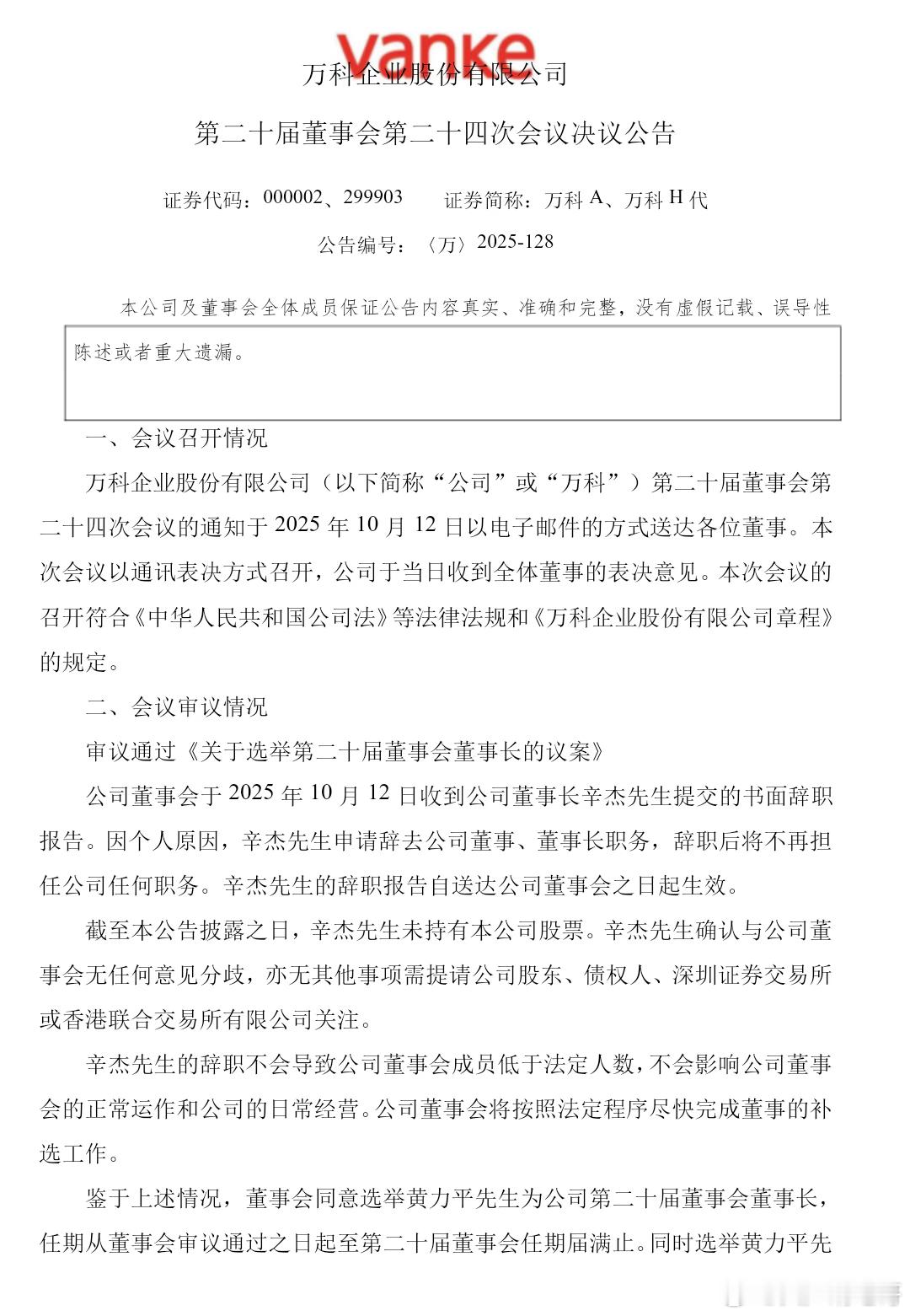 万科一年两换帅 深铁系黄力平接棒意味着什么?