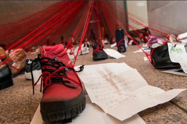北京红砖美术馆有怪展! 红线牵满鞋子,这到底想表达啥? 红砖美术馆的展览很特别 那些用红线相连的鞋子 不是胡乱摆放的 盐田千春用线来表达 人与人之间的连接 红线缠绕穿梭在不同鞋子之间 就像生活中千丝万缕的关系 每双旧鞋都带着主人的痕迹 即使人不在场, 存在感也仍然清晰 这个展览适合静下心慢慢看 不需要急着理解所有寓意 每个人的感受可能都不一样 如果你对这类艺术形式感兴趣 可以去现场体会一下