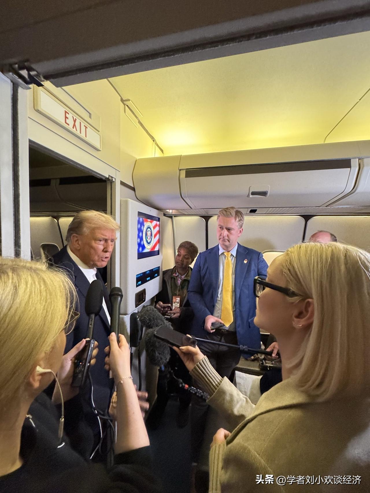 特朗普在空军一号返回华盛顿,当地时间凌晨 12:45。特朗普总统的行程已经持续了 36 个小时,他正在和媒体聊天。 有史以来最勤奋的美国总统