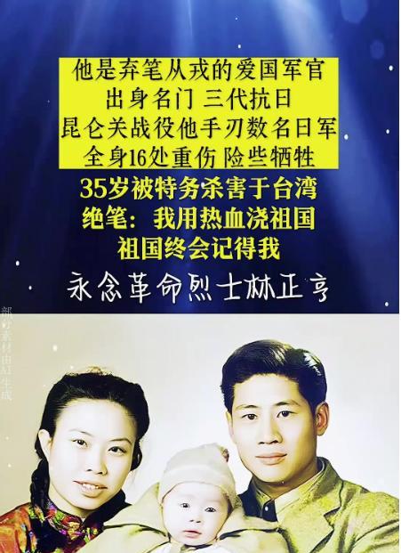 1950年,台湾共产党员林正亨被枪决,囚车正巧经过他家门前,他猛然站起大声喊:保珠,快出来,我要上刑场了,保珠、保珠。 ( 麻烦各位读者点一下右上角的“关注”,留下您的精彩评论与大家一同探讨,感谢您的强烈支持!). 1950年1月30日,台北下着细雨,一辆囚车缓缓驶过厦门街 车内身着囚服的林正亨突然起身,朝着街角某户人家的方向呼喊妻子沈保珠的名字 声音穿透雨幕,传入围观人群耳中,有人认出他正是当年在缅甸战场九死一生的抗日军人 囚车很快转弯,不久后远处传来枪响,这位本可安享富贵的台湾望族子弟,最终倒在了国民党的枪口下 林正亨出身台湾“雾峰林家”,这一家族在台湾历史上颇具影响力,祖上从福建漳州迁居台湾,历经八代积累,靠樟脑生意奠定丰厚家业 若林正亨选择安逸,即便终生不事生产,也能依托家族财富过着优渥生活 但雾峰林家的传承不止于财富,更有深植于血脉的家国情怀 林正亨的祖父林朝栋曾参与中法战争,1895年清政府与日本签订《马关条约》,将台湾割让给日本,林朝栋毅然脱下军装,带领家人连夜乘船返回大陆,登船前对着台湾方向磕下三个响头,以表不舍 父亲林祖密成年后,受孙中山委派在闽南参与革命工作,面对日本方面递来的归籍文书,他断然拒绝,变卖台湾所有产业,将所得款项换成几十箱军械,全部用于支援革命。 林正亨幼年常听父亲讲述革命故事,家中供奉着那面褪色的“栋军令旗”,父亲常指着旗帜告诉他,家族传承的不是土地与财富,而是守护家国的责任 童年的林正亨喜爱绘画,常在纸上勾勒理想中的村庄与房屋,立志成为一名画家。 1937年“七七事变”爆发,报纸上刊载的百姓流离失所、家园焚毁的照片,彻底击碎了他的艺术梦。 他放弃厦门大学的学业,收拾行李前往南京,考入中央陆军军官学校,决心将个人命运与国家存亡绑定。 从军校毕业的林正亨即刻奔赴抗日前线 在广西昆仑关战役中,他所在部队承担艰巨作战任务,日军火力凶猛,林正亨右臂中弹,鲜血浸透军服,却始终坚守机枪阵地,用仅剩的力气持续扣动扳机 战后他被送往后方治疗,右臂留下终身损伤,但伤势稍缓便再次申请返回前线。 随后,他随中国远征军进入缅甸作战,1944年一场遭遇战中,日军炮弹炸毁车辆,林正亨被剧烈爆炸震飞,众人皆以为他已阵亡,将其与其他遗体一同堆放 幸运的是,一名战友发现他尚有微弱呼吸,几人用担架抬着他穿越野人山原始森林,历经数日艰辛才将他送回国内。 经诊断,林正亨身上共有16处重伤,双手神经受损严重,被判定为16级伤残,从此无法独立握持枪械 国民党未给予任何表彰与关怀,仅将他调至编外岗位,美其名曰“疗养”,实则将其视作无用累赘。 这段时间,林正亨目睹后方官员沉迷宴饮、贪污军饷,前线战士却忍饥挨饿,他对这一政权彻底失望 1946年,林正亨秘密加入中国共产党,随后与妻子沈保珠返回台湾 岳母为支持他们安家,赠予20根金条,这笔财富足够支撑他们在台湾购置房产、开设商铺,过上安稳生活,但林正亨却用这笔钱创办了一家鞋店,将其作为地下党的秘密联络站 他将情报书写在极薄的纸张上,折叠后塞进钢笔帽,再借前往茶馆的机会,将钢笔“遗忘”在约定座位;某次传递情报时发现被特务跟踪,他故意混入菜市场,与摊主讨价还价并购买青菜,凭借市井气息成功摆脱跟踪 回到家中,面对妻子沈保珠担忧的目光,他仅以轻松语气提及晚餐计划,从不透露工作的危险,只承诺未来能与家人光明正大地生活。 1947年台湾“二二八”起义中,林正亨参与其中,事后躲进医院才避开国民党的清查。 1949年,蒋介石集团败退台湾,开始大规模搜捕地下党员,同年8月,因叛徒出卖,林正亨被捕入狱 国民党知晓其雾峰林家背景,且其父与蒋介石有旧交,多次派人劝降,提出签署悔过书并供出组织成员即可获释与家人团聚的条件,林正亨始终坚决拒绝,甚至编造假的上级姓名以保护同志 在狱中三个月,他遭受鞭抽、灌辣椒水等酷刑,却始终未泄露任何情报 他用受伤的双手为孩子剪制窗花,在书信中告知妻子床板下藏有剪好的窗花,嘱咐过年时为孩子贴上。行刑前一日,他托狱友向家人传递讯息,叮嘱妻子抚养孩子长大,等待国家统一 行刑当日,囚车经过家门时,林正亨起身呼喊妻子名字,沈保珠听闻后赤脚冲入雨中,奔跑两公里抵达刑场,最终只见到丈夫的遗体 多年后,林正亨被追认为革命烈士,他在缅甸战场带回的半截纽扣,被陈列在中国人民抗日战争纪念馆中。 其子林为民参观展览时,站在那枚已发绿的纽扣前,凝视墙上“台湾心”三字,热泪盈眶 沈保珠始终妥善保管家中那面“栋军令旗”,向子女讲述父亲的事迹时,总会指着中国地图,告知他们父亲的牺牲是为了祖国统一 林正亨的一生,从未追求英雄之名,只是将家族传承的家国情怀转化为行动——抗日保家、投身革命、期盼统一 这种深植于血脉的信念,超越了个人利益。