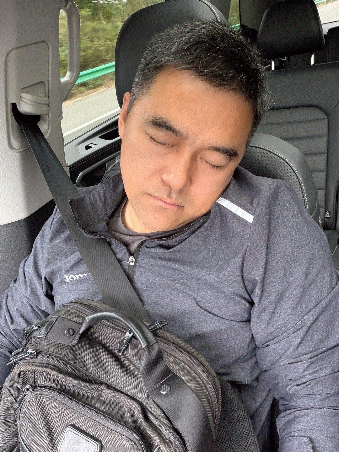 五十岁了,依然有婴儿般的睡眠,上车30秒就着,令人羡慕。