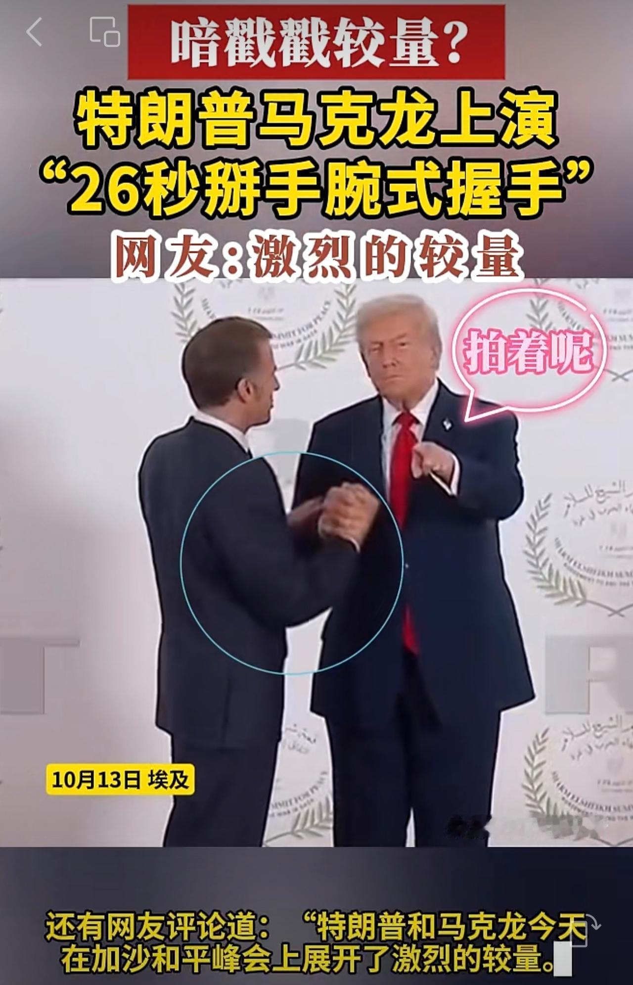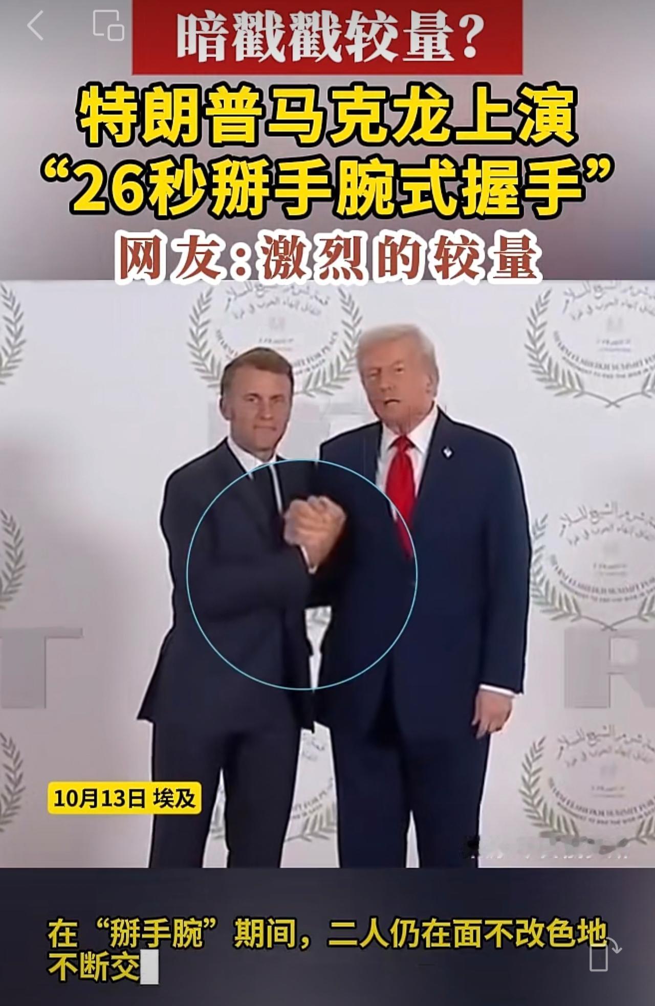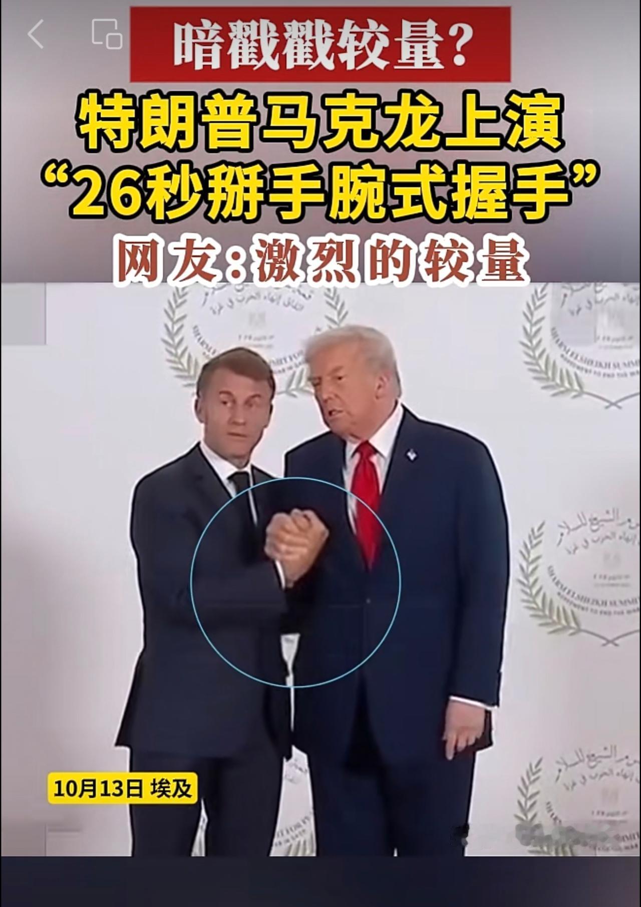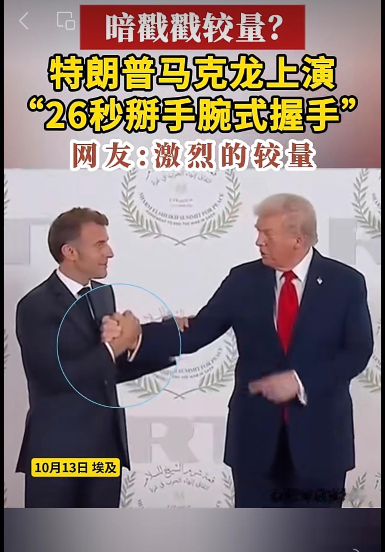 暗戳戳较量?特朗普马克龙上演“26秒掰手腕式握手”网友:激烈的较量 马克龙 特朗普