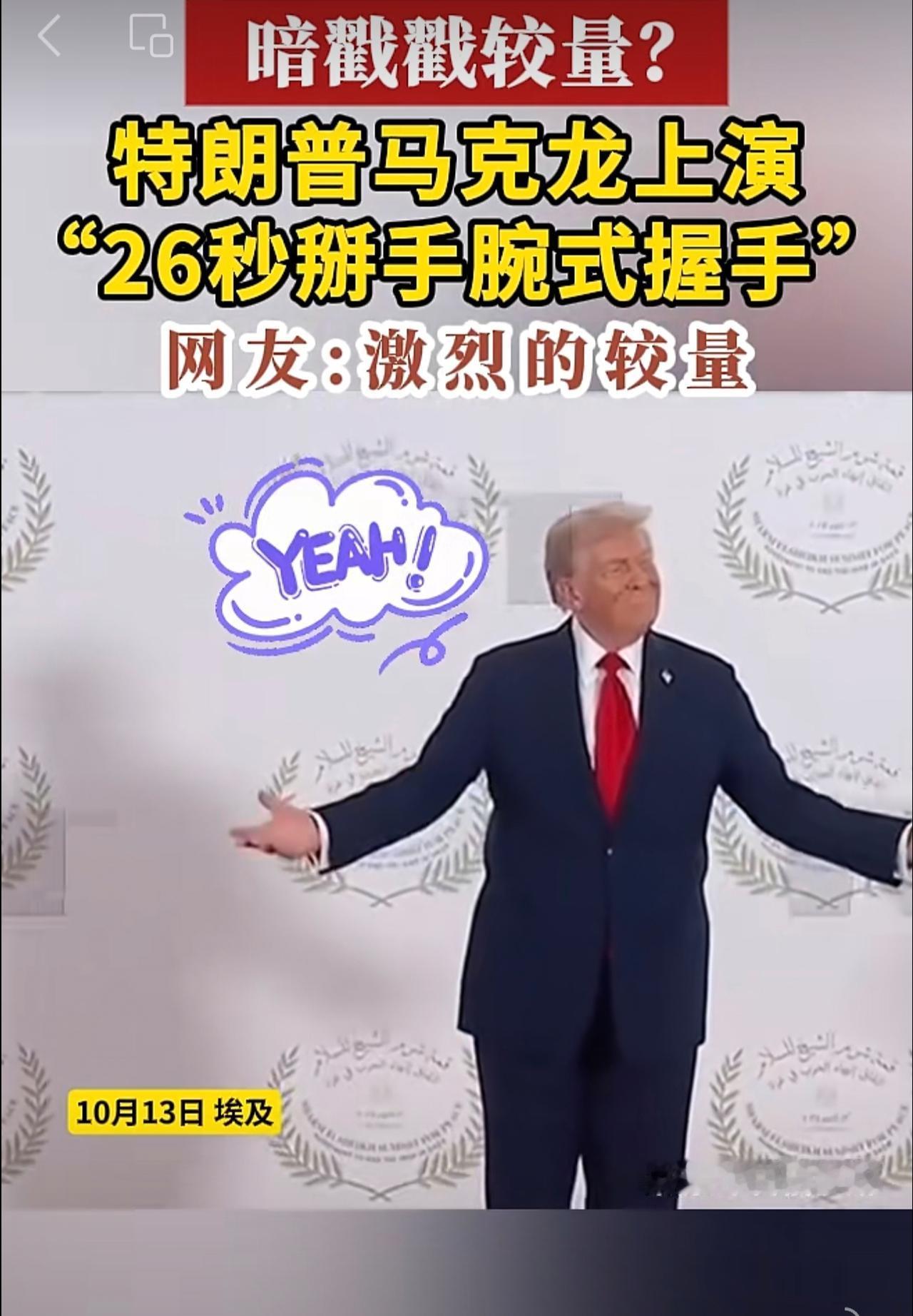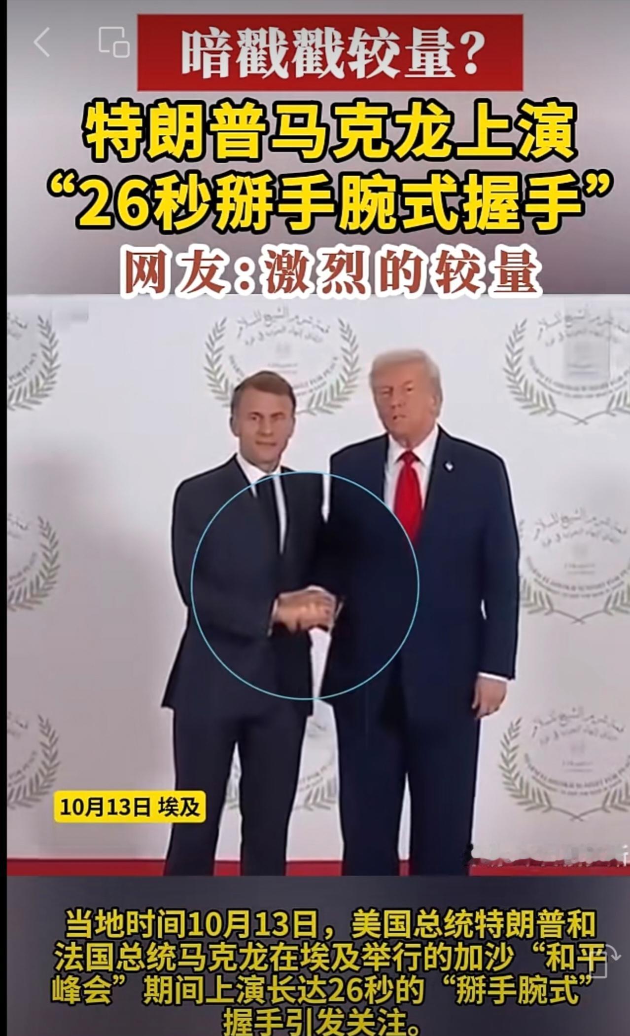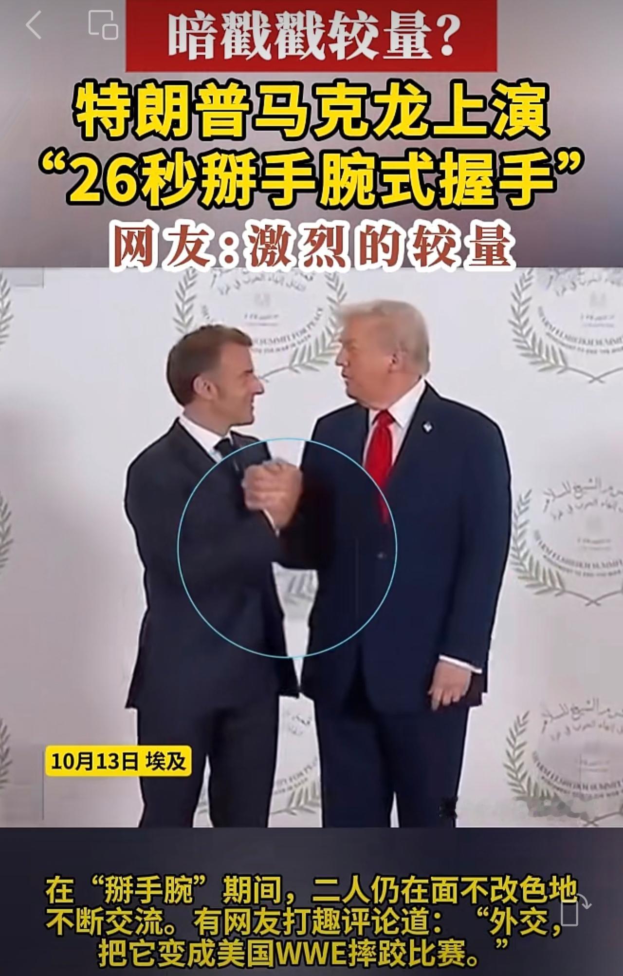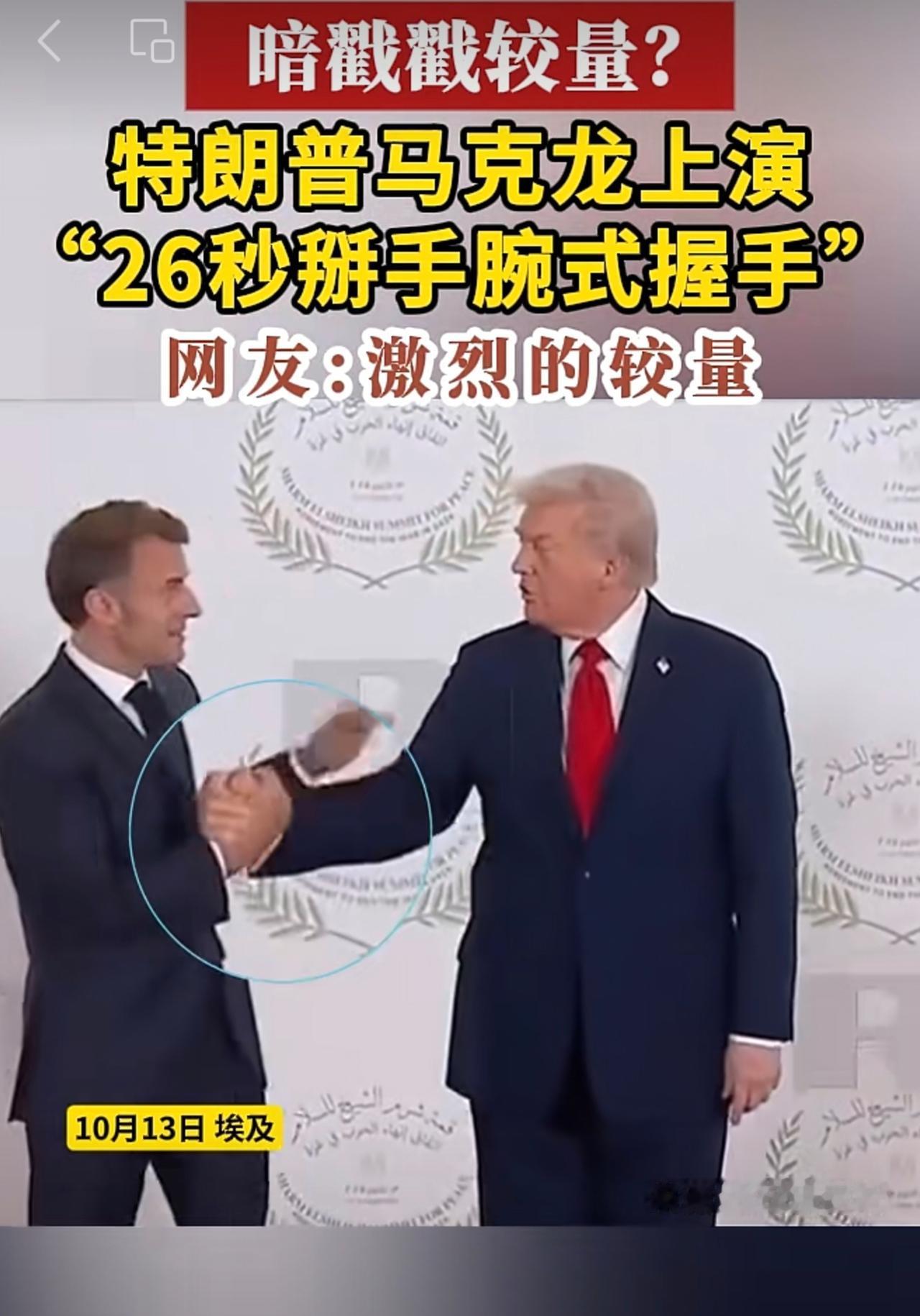 暗戳戳较量?特朗普马克龙上演“26秒掰手腕式握手”网友:激烈的较量 马克龙 特朗普
